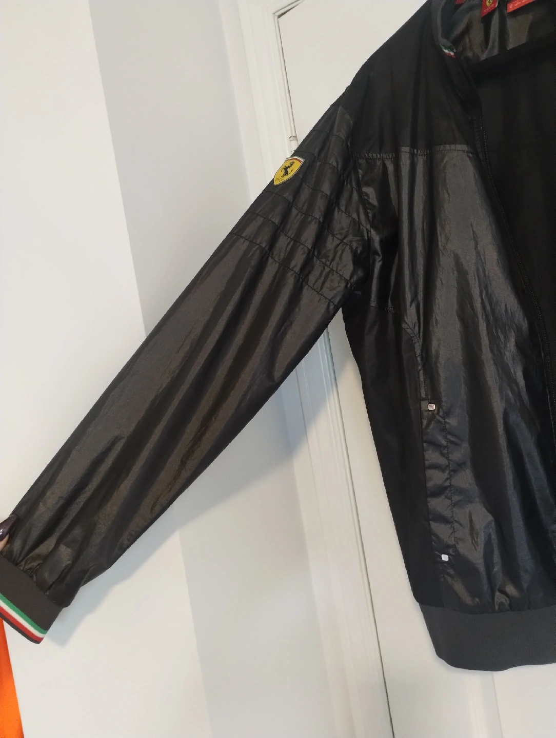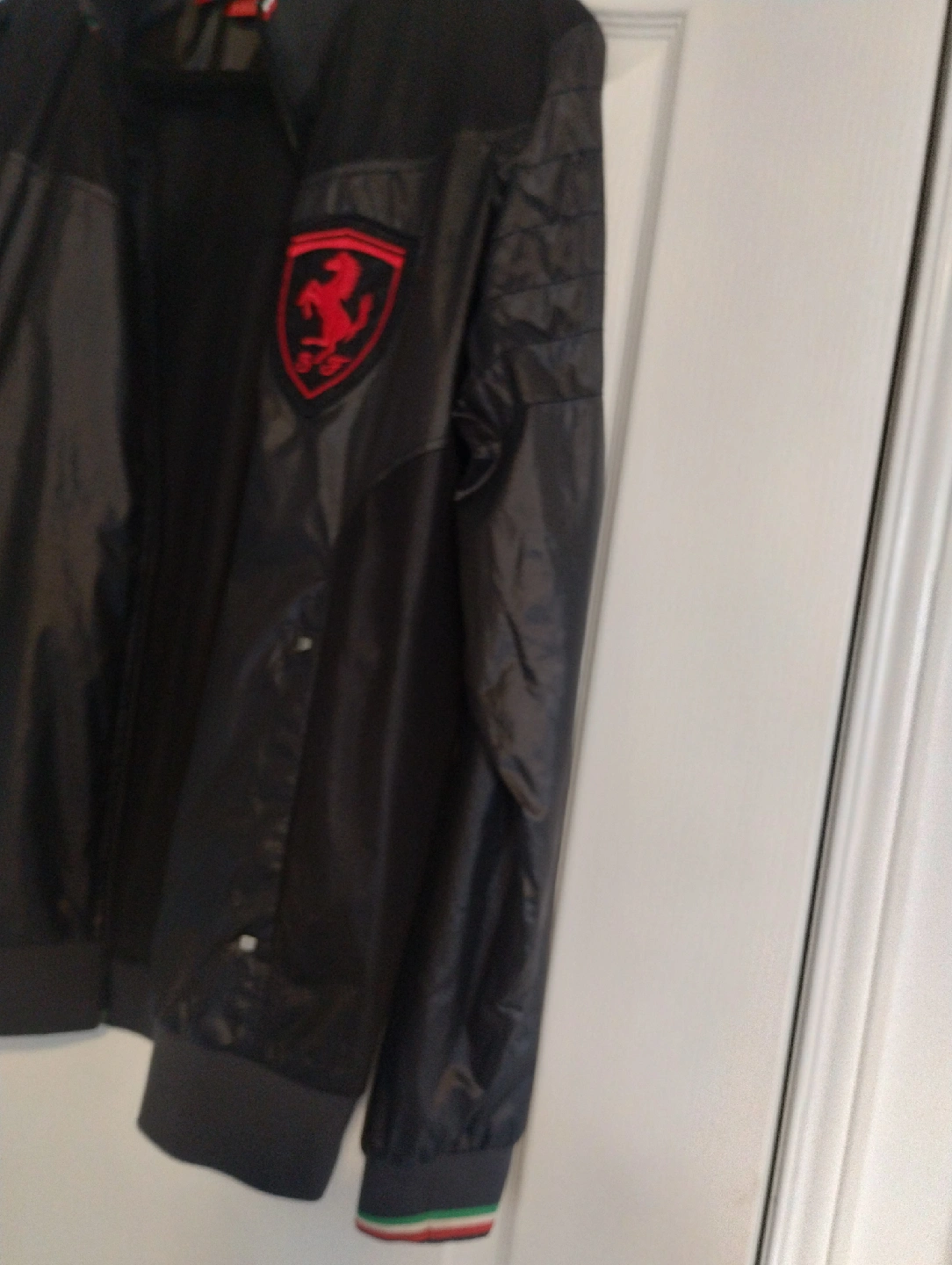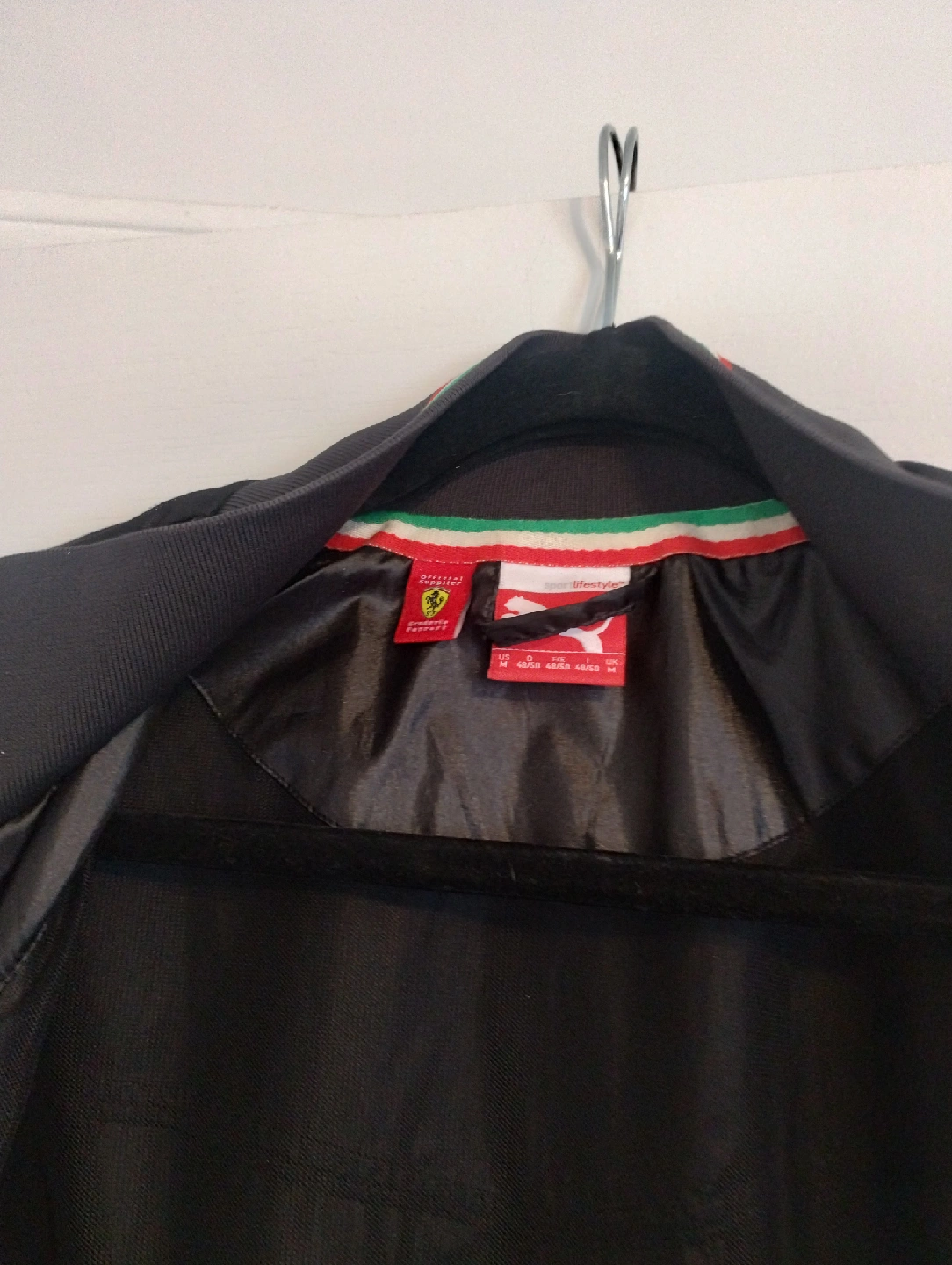 10Selling a Puma Ferrari track jacket in size medium! It's black with the Ferrari logo on the chest. The jacket features the Italian flag colours on the collar and cuffs. Great for any Ferrari or Puma fan!