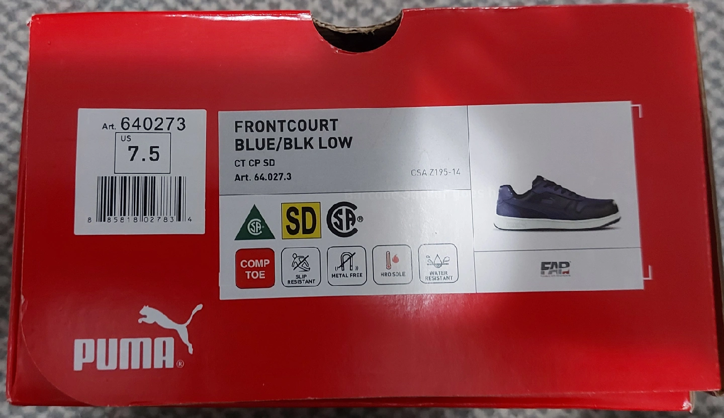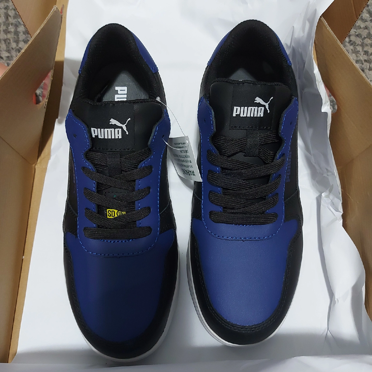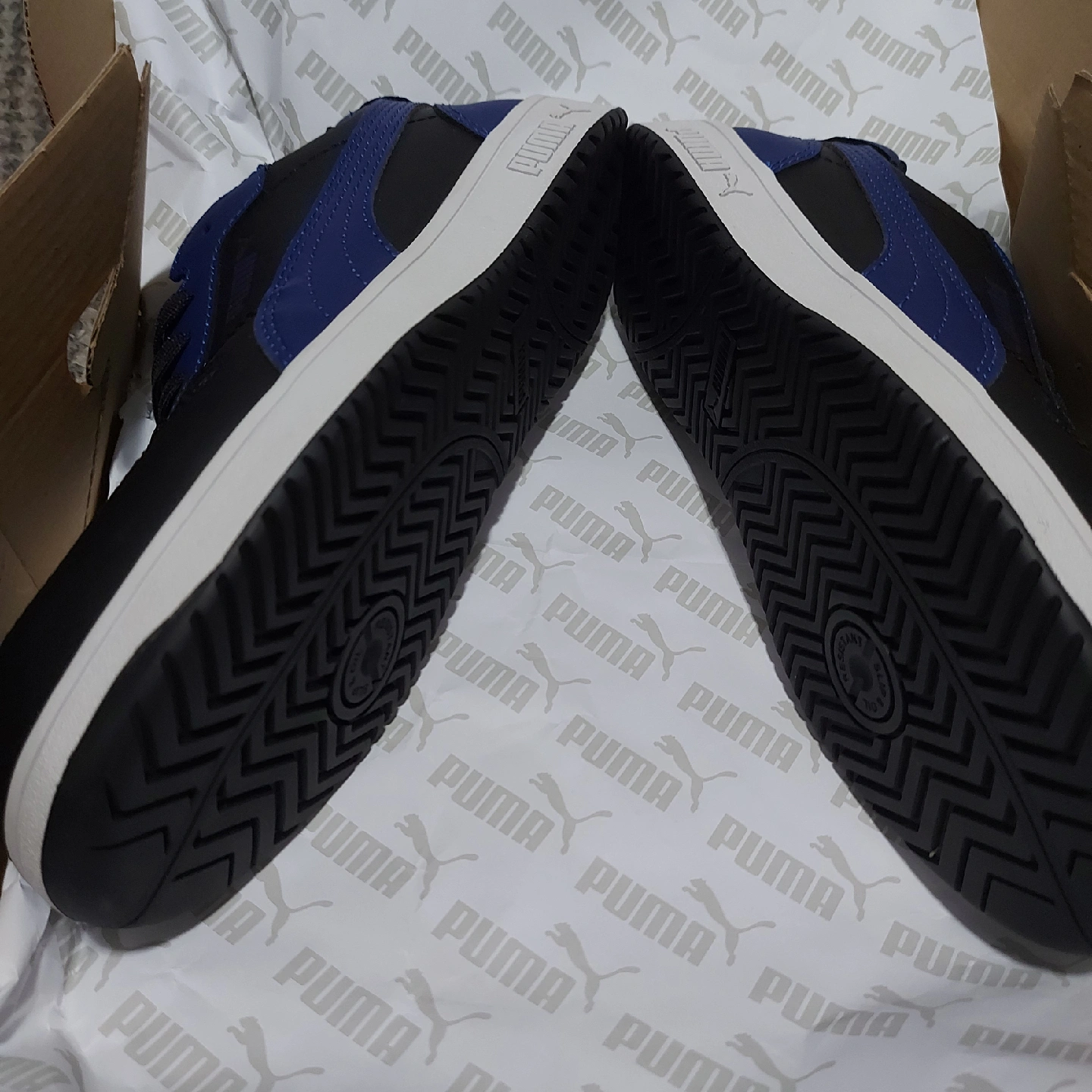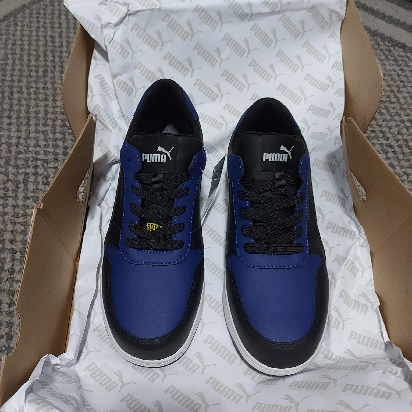 10Selling a brand new pair of Puma Frontcourt (Safety) shoes! These are blue and black, size 7.5 US, and come in the original box. They're a stylish and comfortable low-top design, perfect for everyday wear.