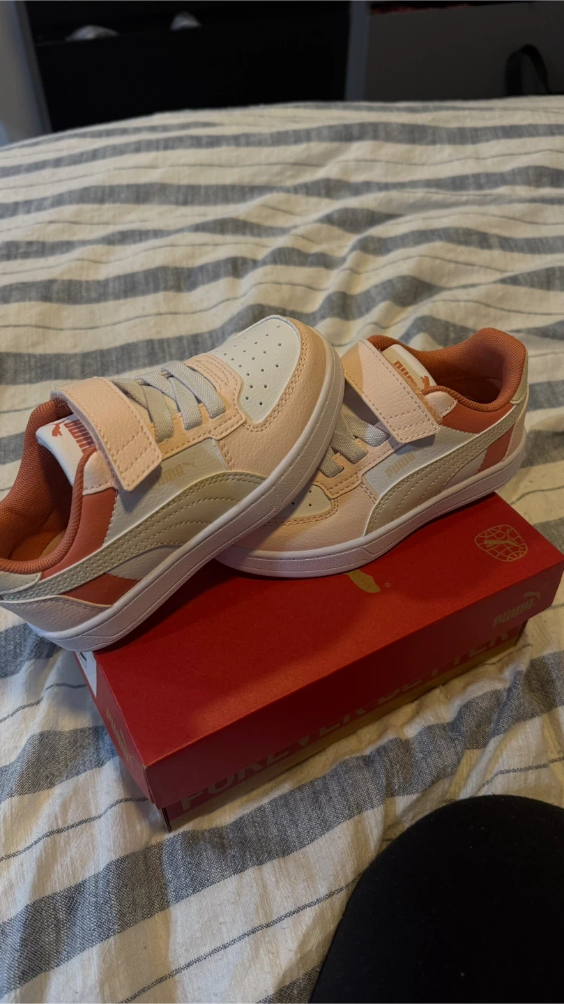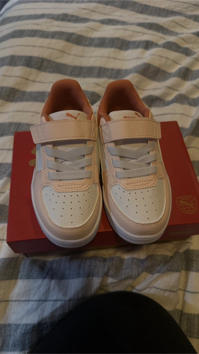 31These adorable Puma Courtflex V2 sneakers are perfect for your little one! They are brand new and come in the original box (never worn). The shoes feature a cute pink and white colourway with a velcro strap for easy on and off. They are a size 11.5 CAD. Available in Vaughan and downtown Toronto.
