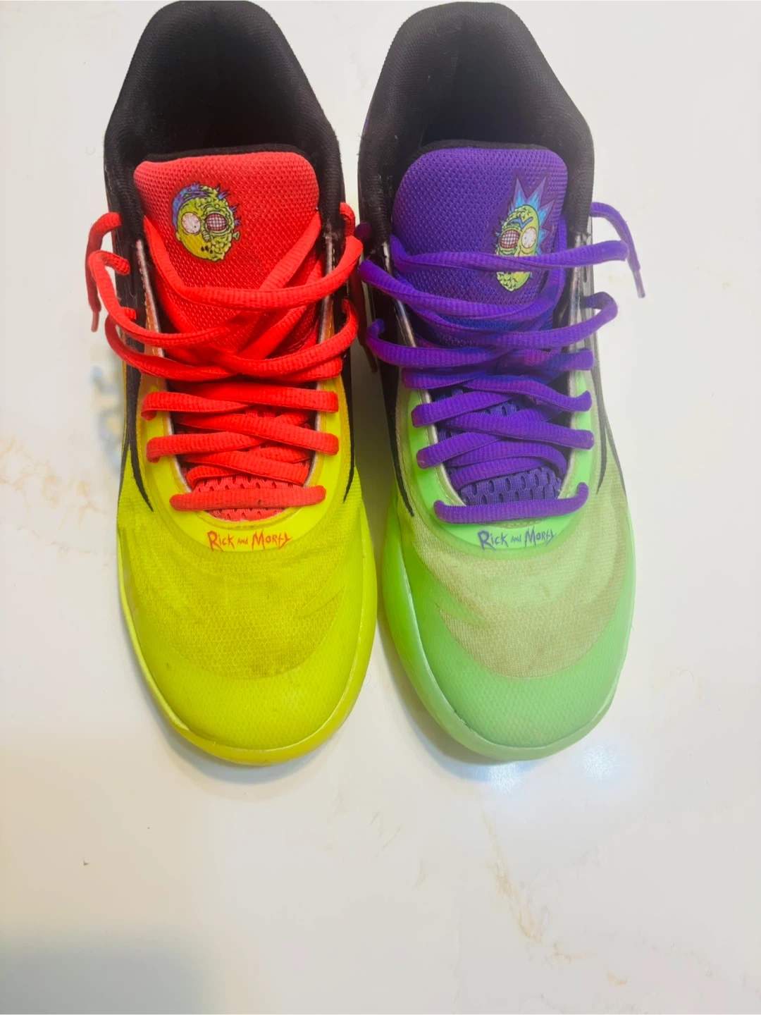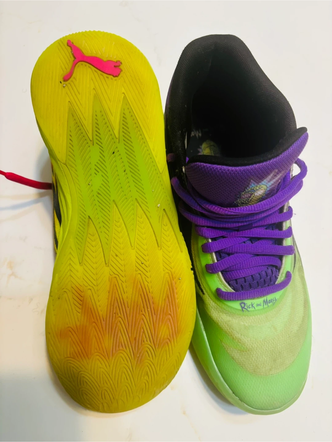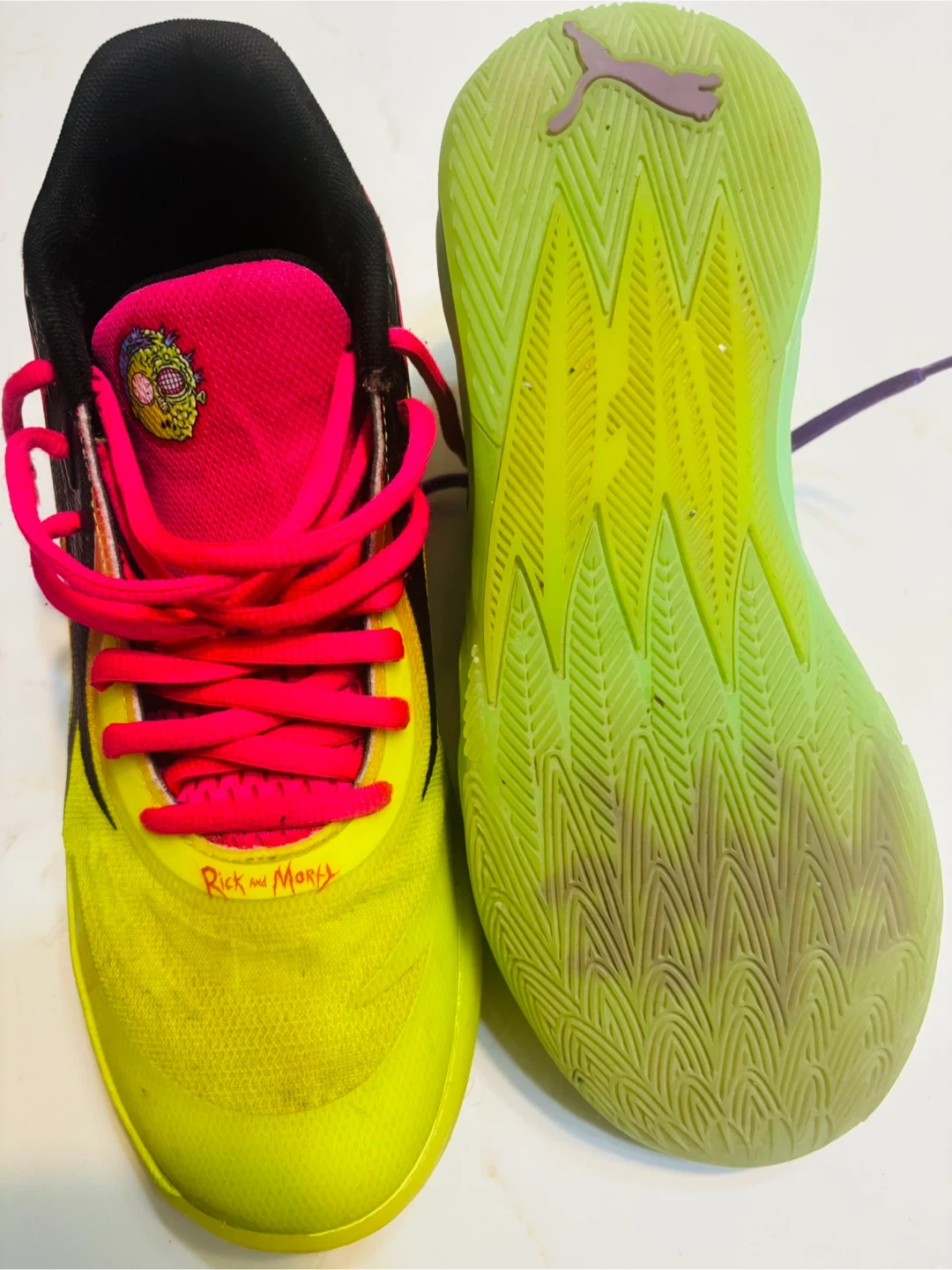 15Selling a pair of Puma MB.01 Rick and Morty basketball shoes! These are definitely eye-catching with their mismatched colour scheme and Rick and Morty details. They are in good condition and ready for the court or casual wear