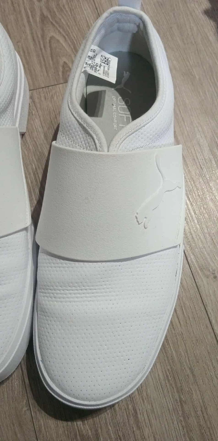 65Selling a pair of Puma men slip-on shoes in a clean white colour. They're in great shape and super comfy for everyday wear! Size is 10