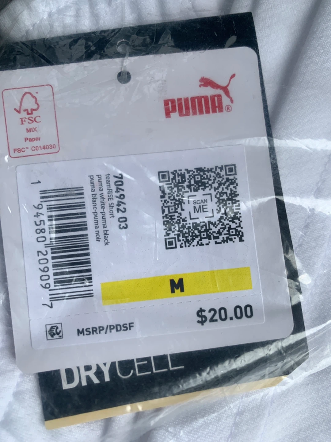 26Selling a brand new pair of Puma teamRISE shorts in white and black, size medium! They're still in the original packaging with the tags attached. The tag shows an MSRP of $20.00. These shorts feature Puma's DRYCELL technology, making them great for workouts or casual wear
