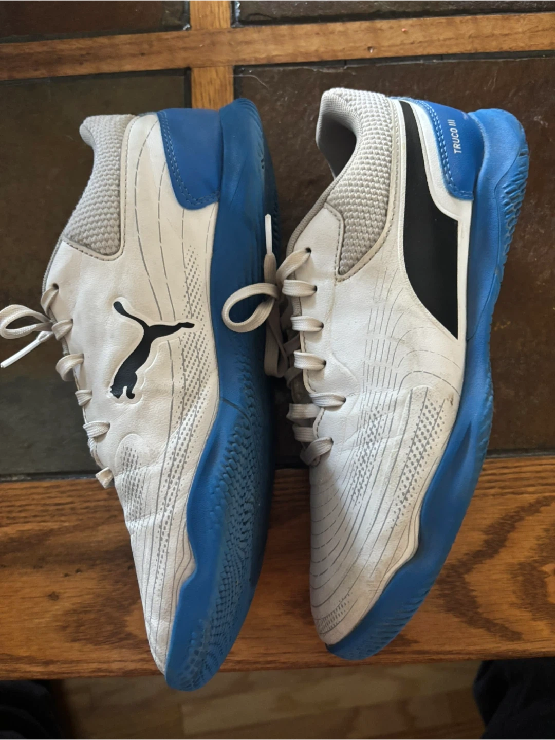 10Selling a pair of Puma TRC Mira shoes in white and blue! They are in used condition with some wear, but still have lots of life left. The size is a US 7.
