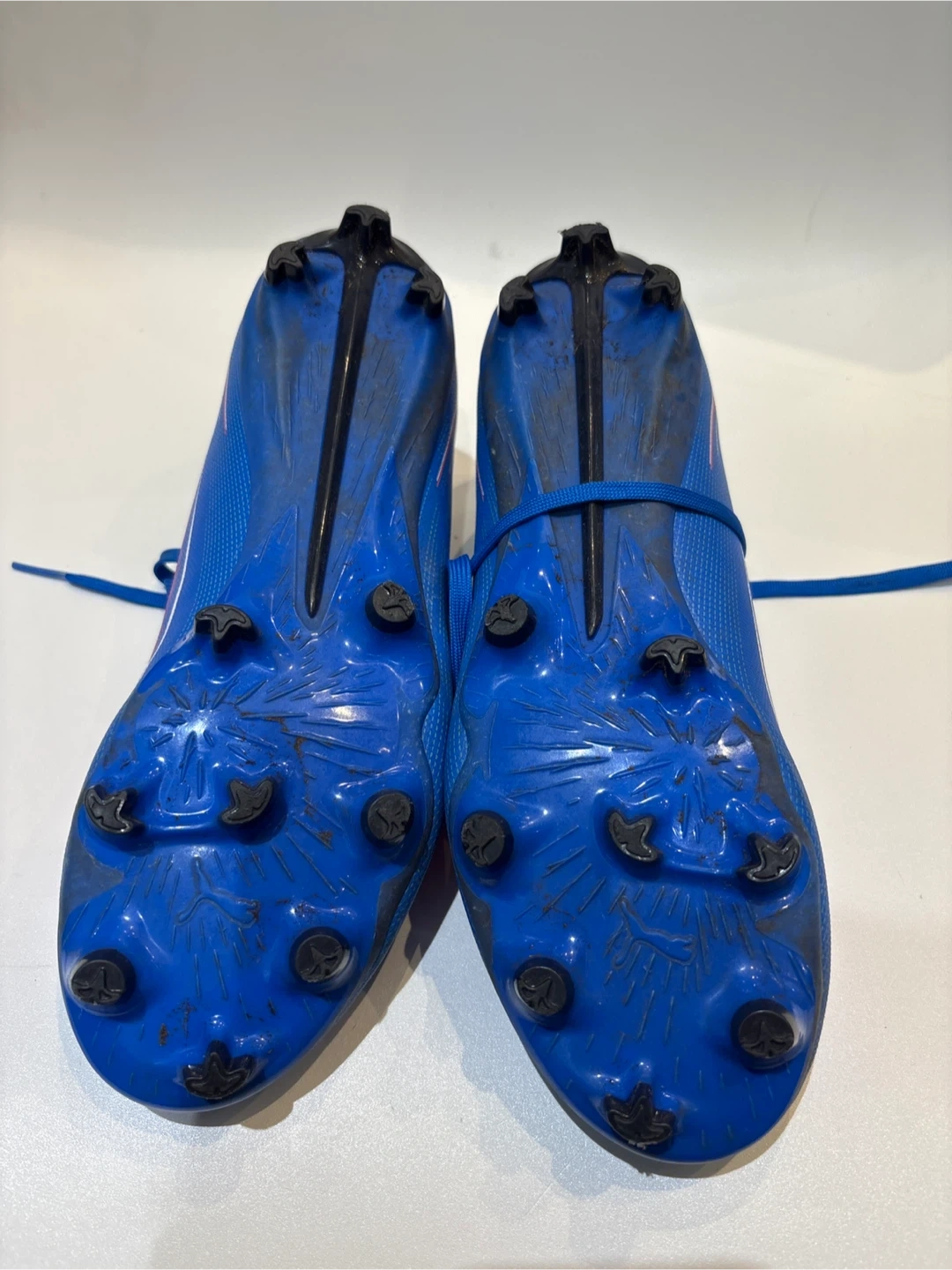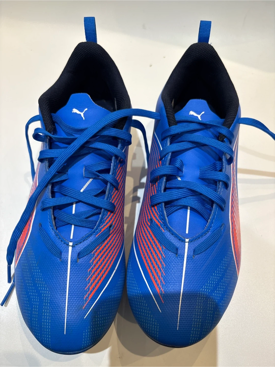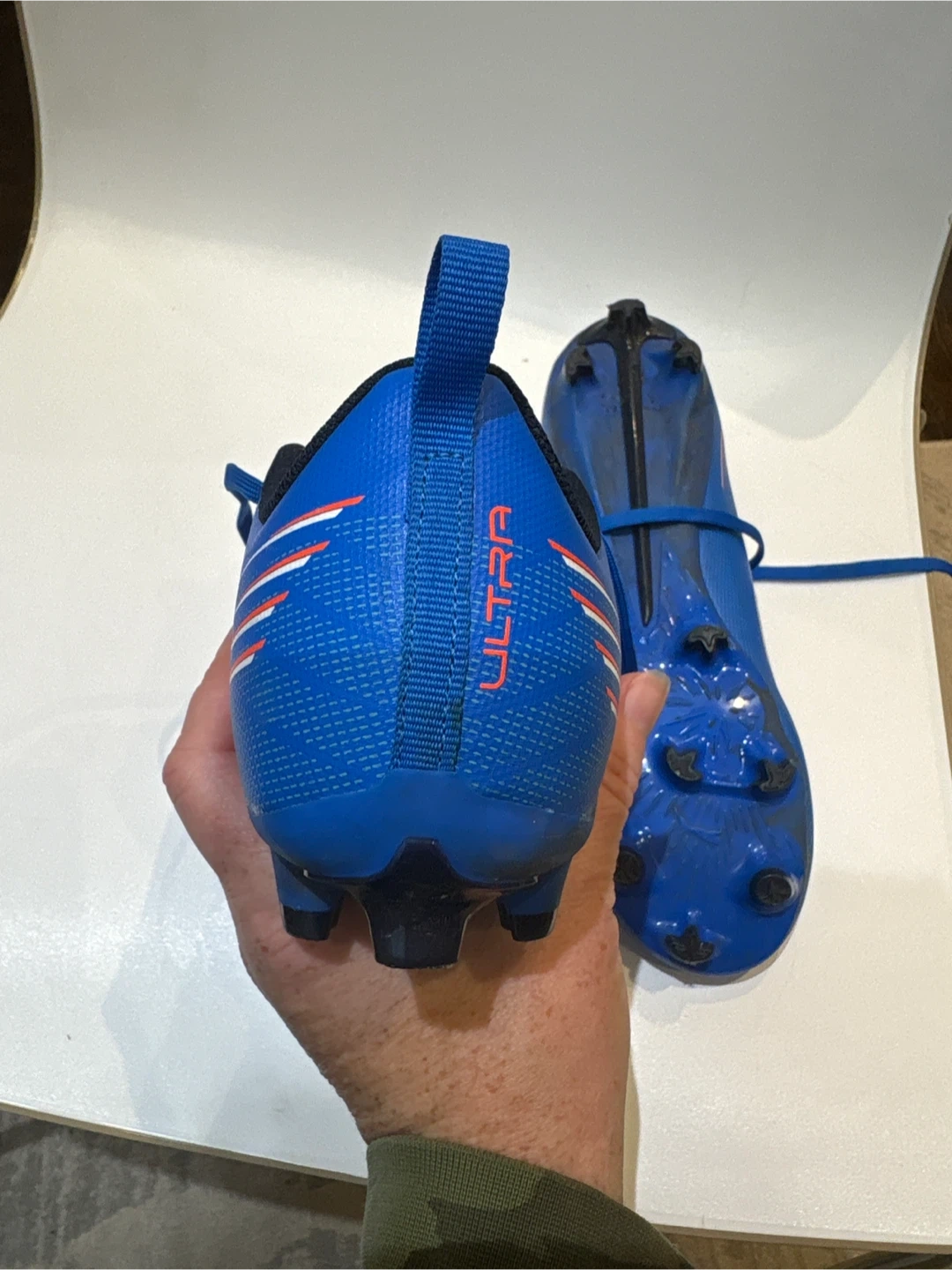 10Selling a pair of unisex Puma Ultra soccer cleats in size US 6.5 kids (equivalent to size 7.5 or 8 women). They are blue with red and white accents. Great for the soccer field! My child forgot her cleats at a tournament so I had to buy what I could find but they were a bit too small for her. Worn one day only. Paid about $100 with tax new.