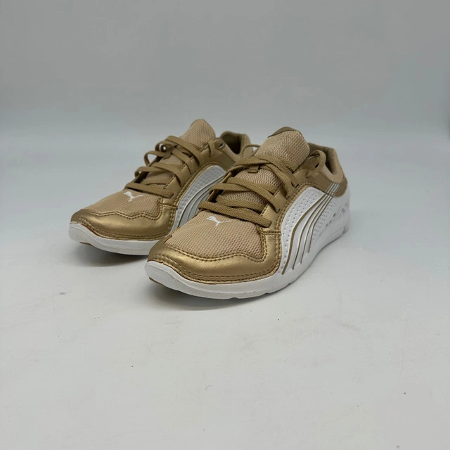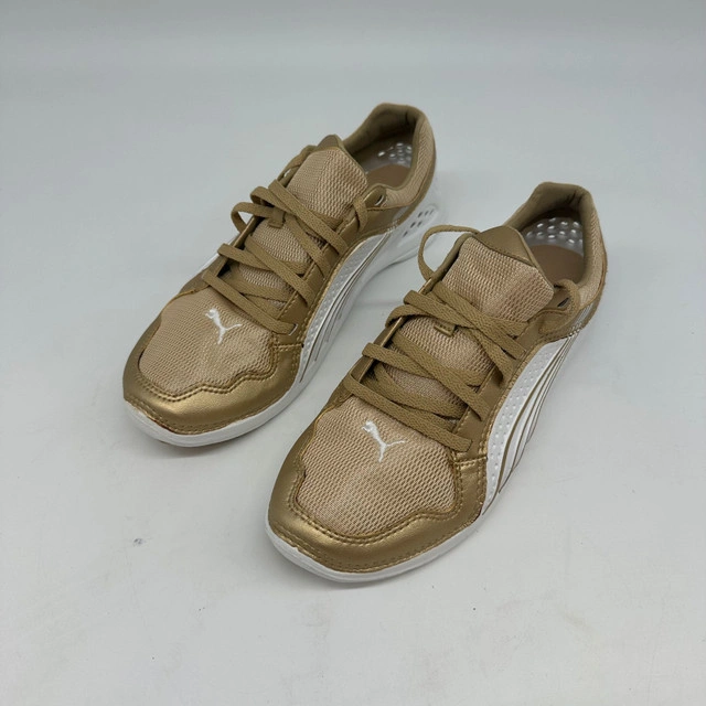These are a pair of Puma Women’s L.I.F.T. Bolt Gold Racer Wns Sneakers, size 8.5, with a stylish gold and white design. These used sneakers are in great shape and ready for your next run or casual outing. Here are some features of the Puma sneakers: * Brand: Puma * Style: L.I.F.T. Bolt Racer * Colour: Gold/White * Size: Women's 8.5 Looking at similar listings on Kijiji, these sneakers are typically priced between $30 and $60. Because these are in better than average condition, I've priced them at the higher end of that range. And remember, if the ad is still up, they're still available! 847 s7