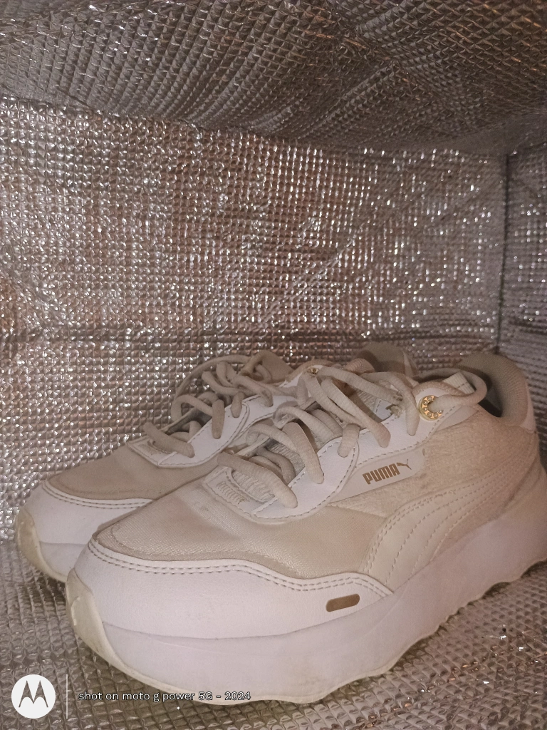 28Selling a pair of women's Puma sneakers in size 7. They are a lovely white colour and in good condition. Perfect for everyday wear or light workouts!