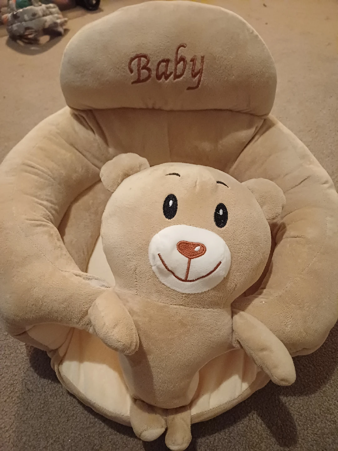 Super cute baby bear support seat! Perfect for helping your little one sit up and explore the world around them. The seat is soft and plush, providing a comfortable and safe space for your baby to play and practice sitting. It's in great condition and ready for a new home!