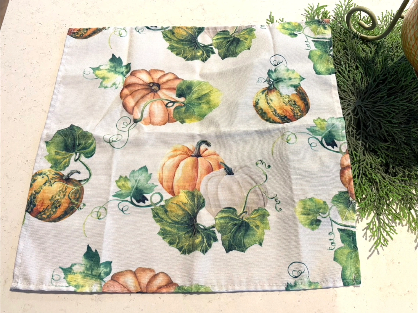 These are a set of 4 napkins with a lovely pumpkin print! They're perfect for adding a touch of autumn to your dining table. Great for fall gatherings or everyday use, they're in new condition and ready to brighten up your ๐ก 10โ x 10โ