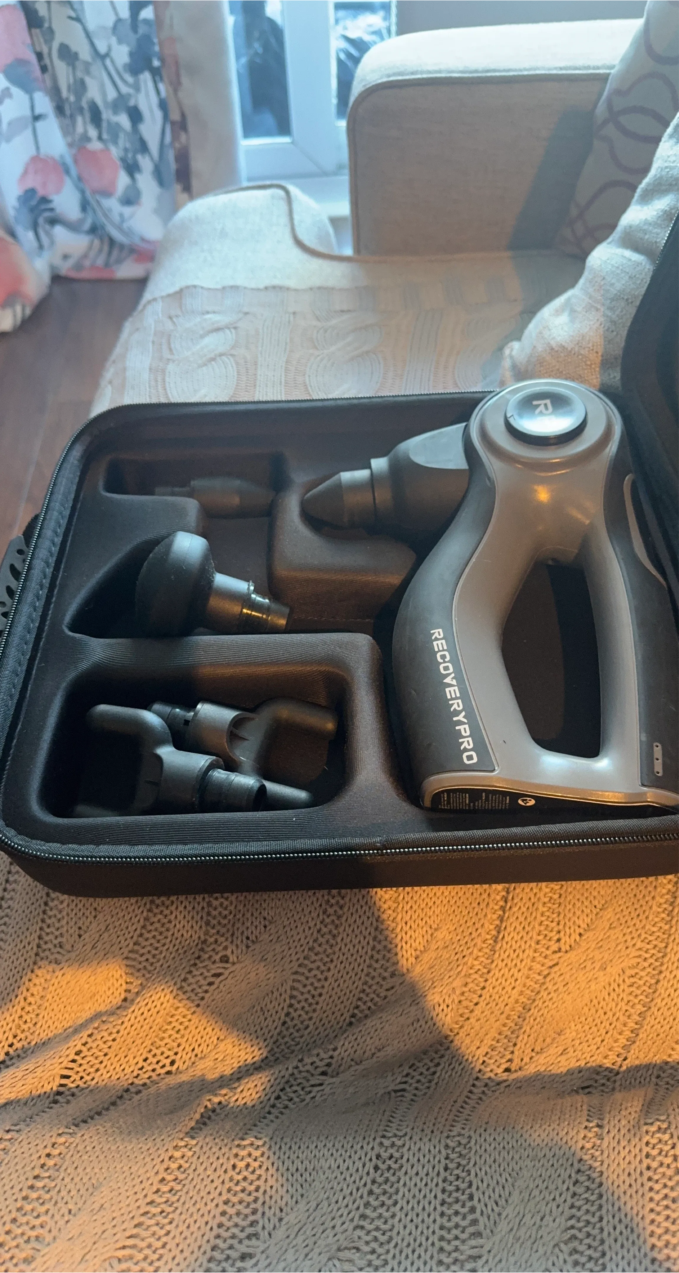 This RecoveryPro massage gun comes with several different attachments. It's designed for muscle recovery and relaxation. Great for athletes or anyone experiencing muscle soreness!