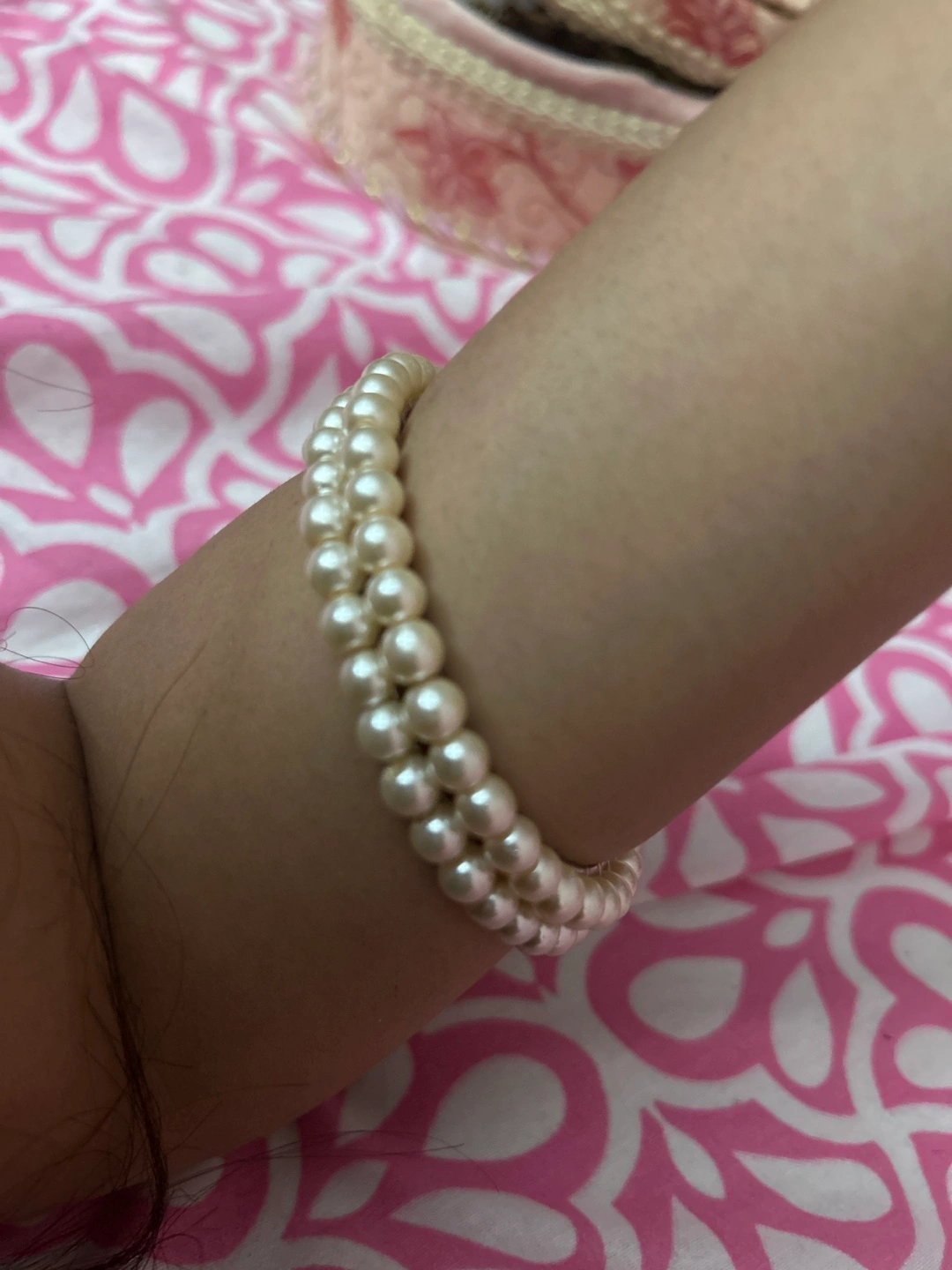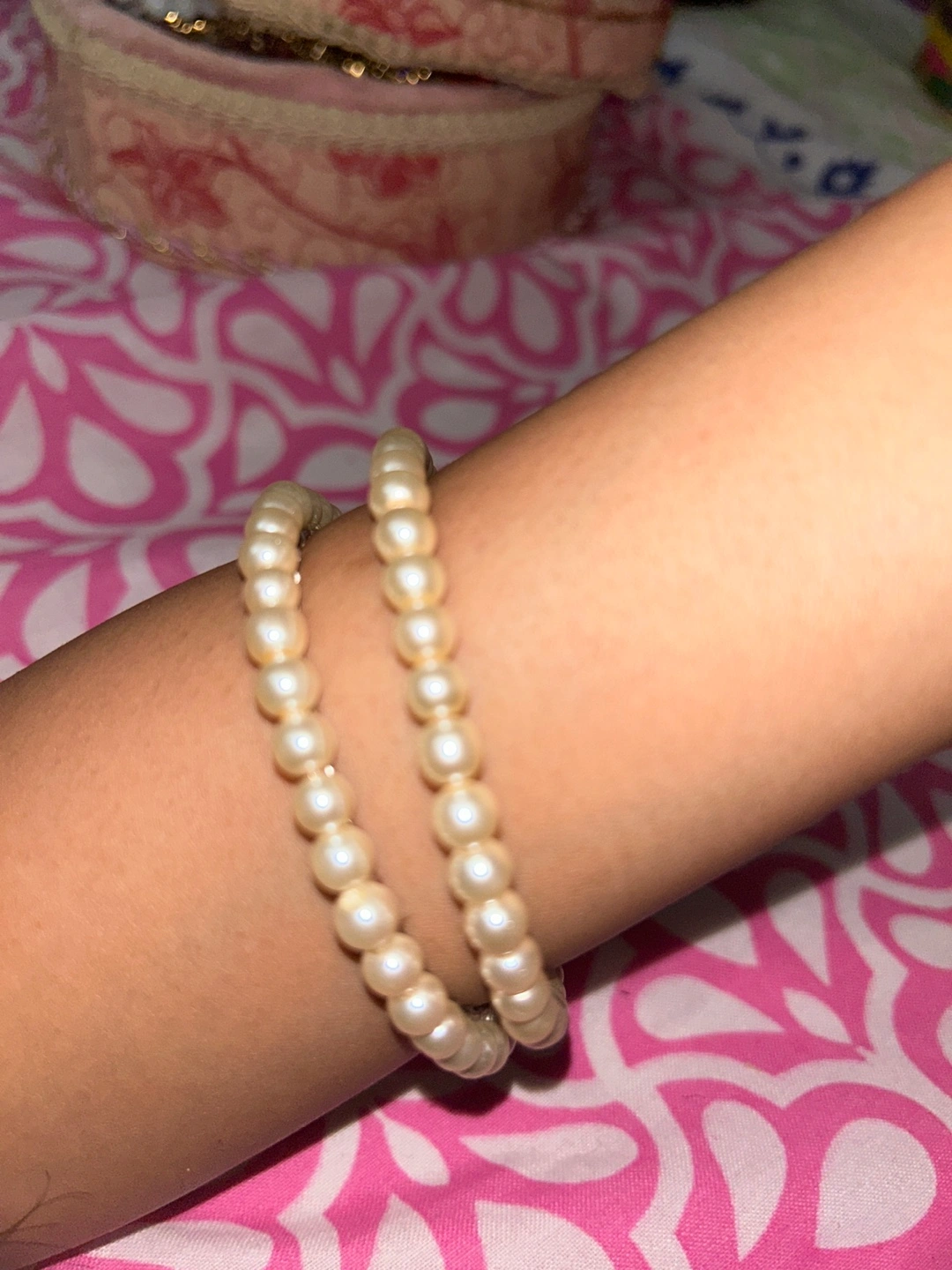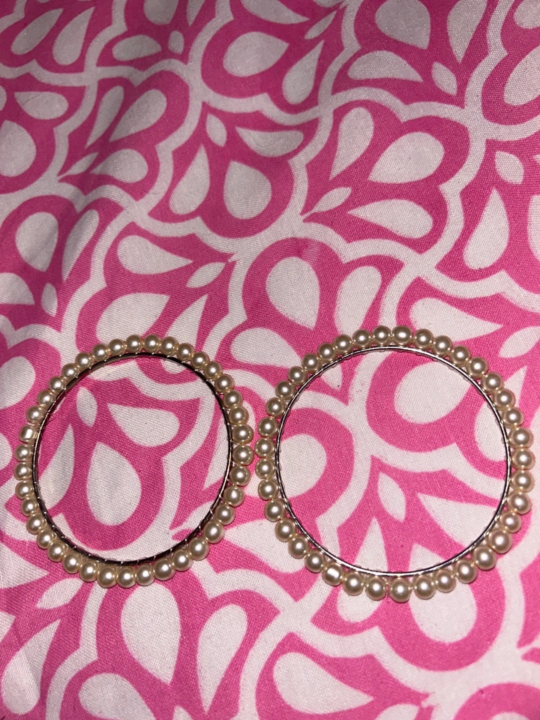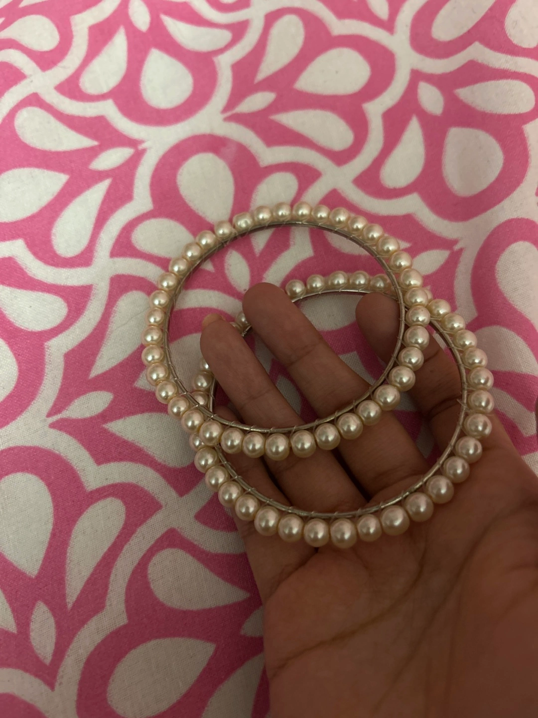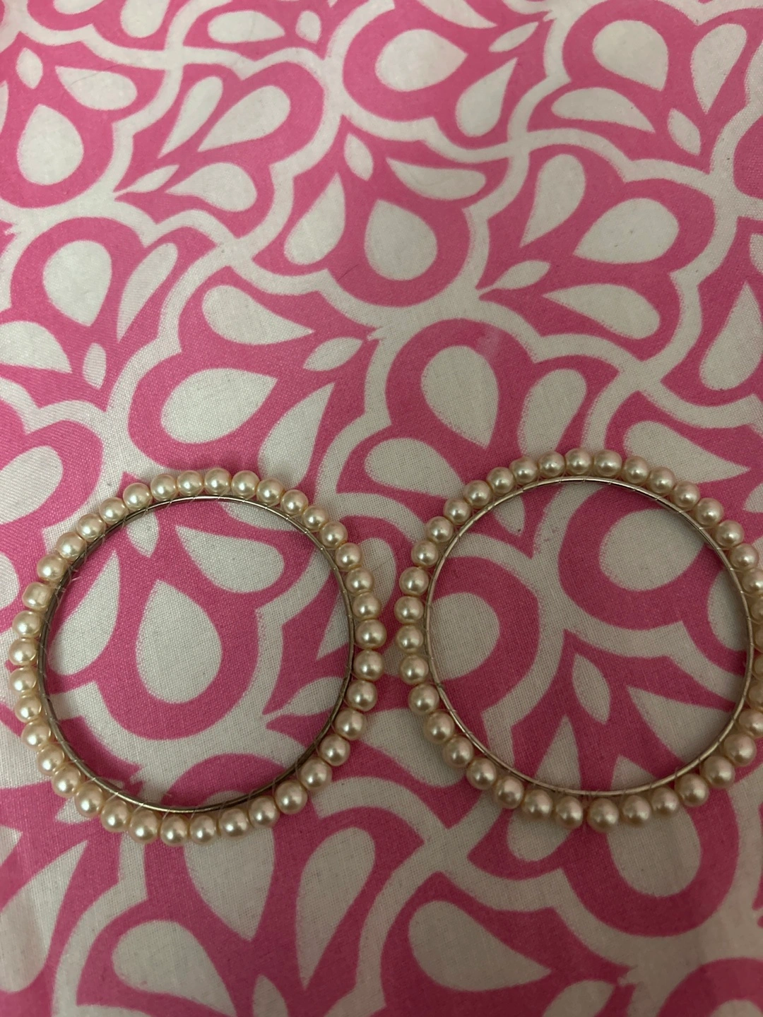 Selling a pair of pearl bangles 2 bangles set! The only reason I want to get rid of them is because they’re a bit too big for me and not my size so they fall off. Never been worn other than trying it on for the picture. They're in great condition and would be a lovely addition to any outfit, and go with everything and any basic outfit ✨ message me if you’re interested.