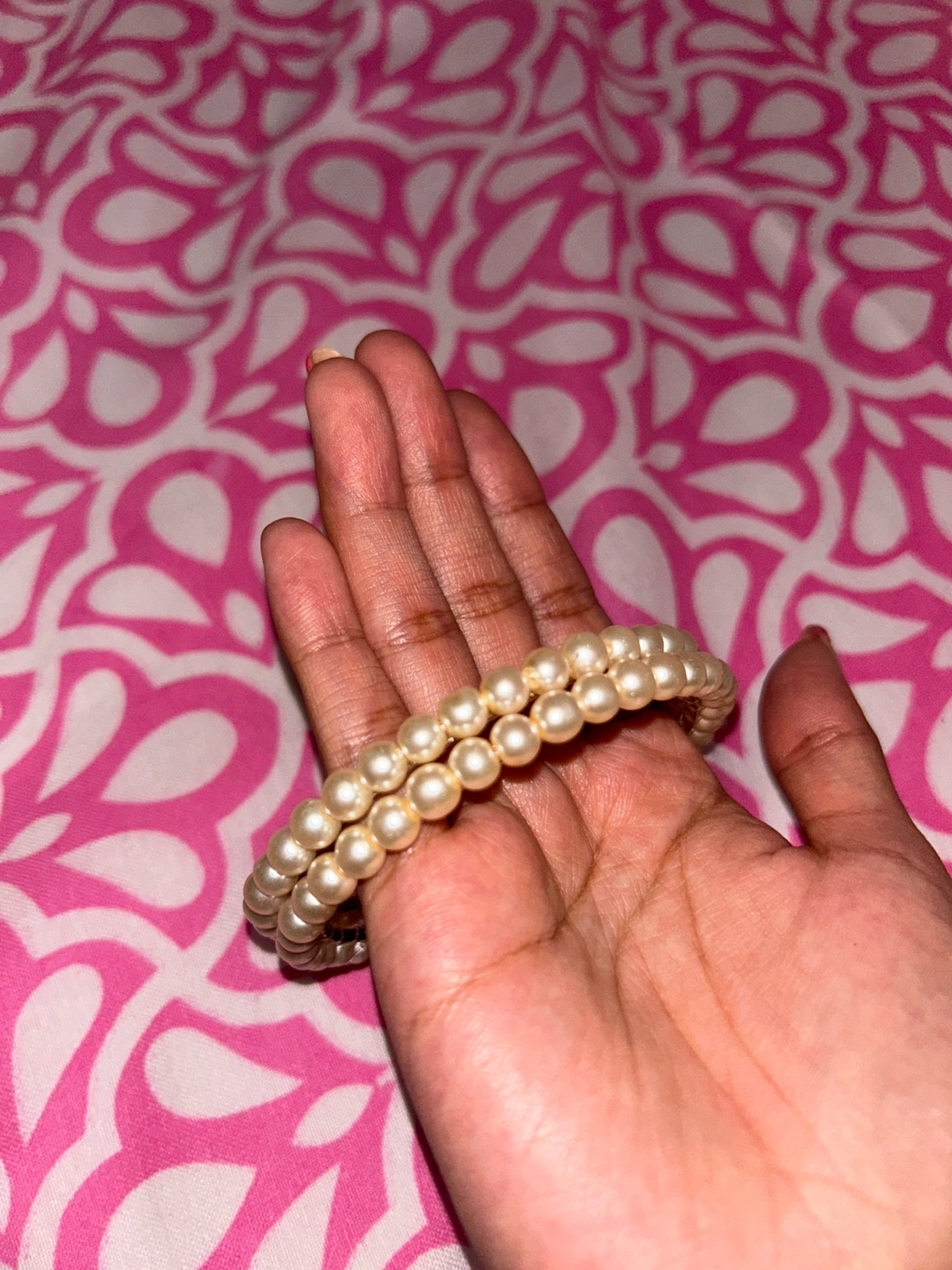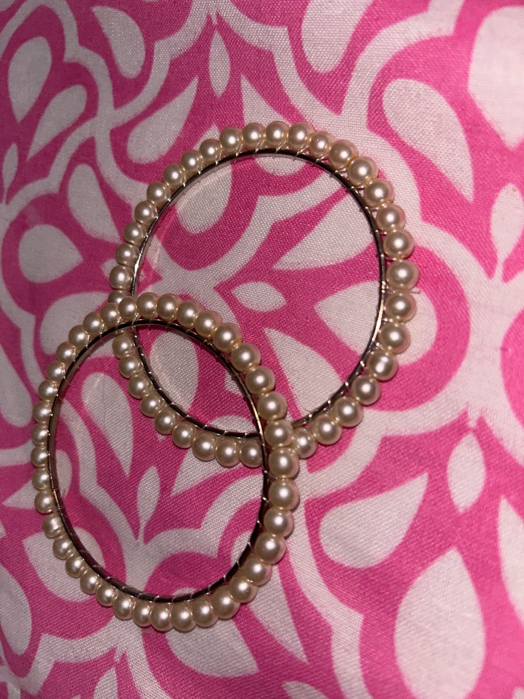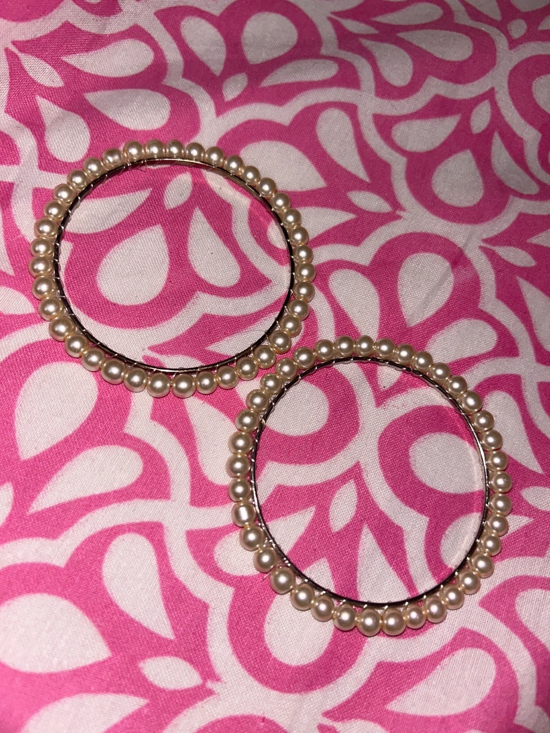 Selling a pair of pearl bangles 2 bangles set! The only reason I want to get rid of them is because they’re a bit too big for me and not my size so they fall off. Never been worn other than trying it on for the picture. They're in great condition and would be a lovely addition to any outfit, and go with everything and any basic outfit ✨ message me if you’re interested.