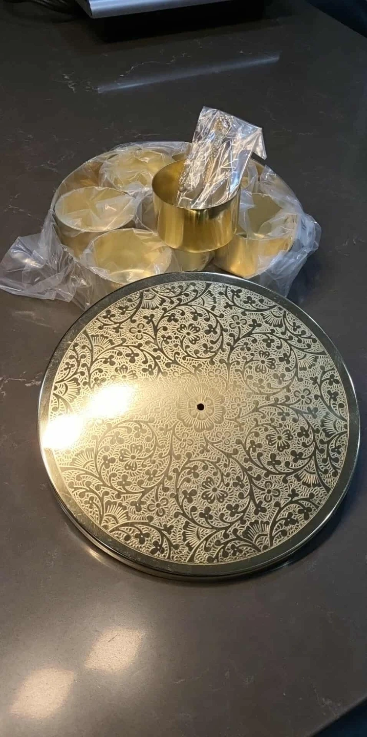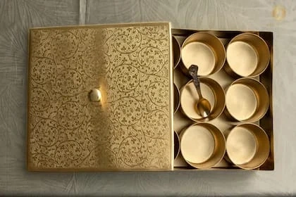10The brass spice box is expertly crafted to store and protect your spices with its durable material. Perfect for gifting or as a special piece for your own kitchen. Round brass spice box 8 inch -$73 Rectangle brass spice box 11 inch - $79 Negotiable if buying multiple pieces.