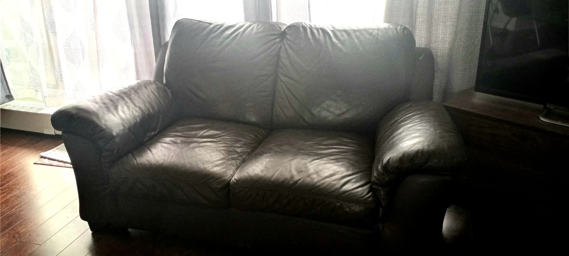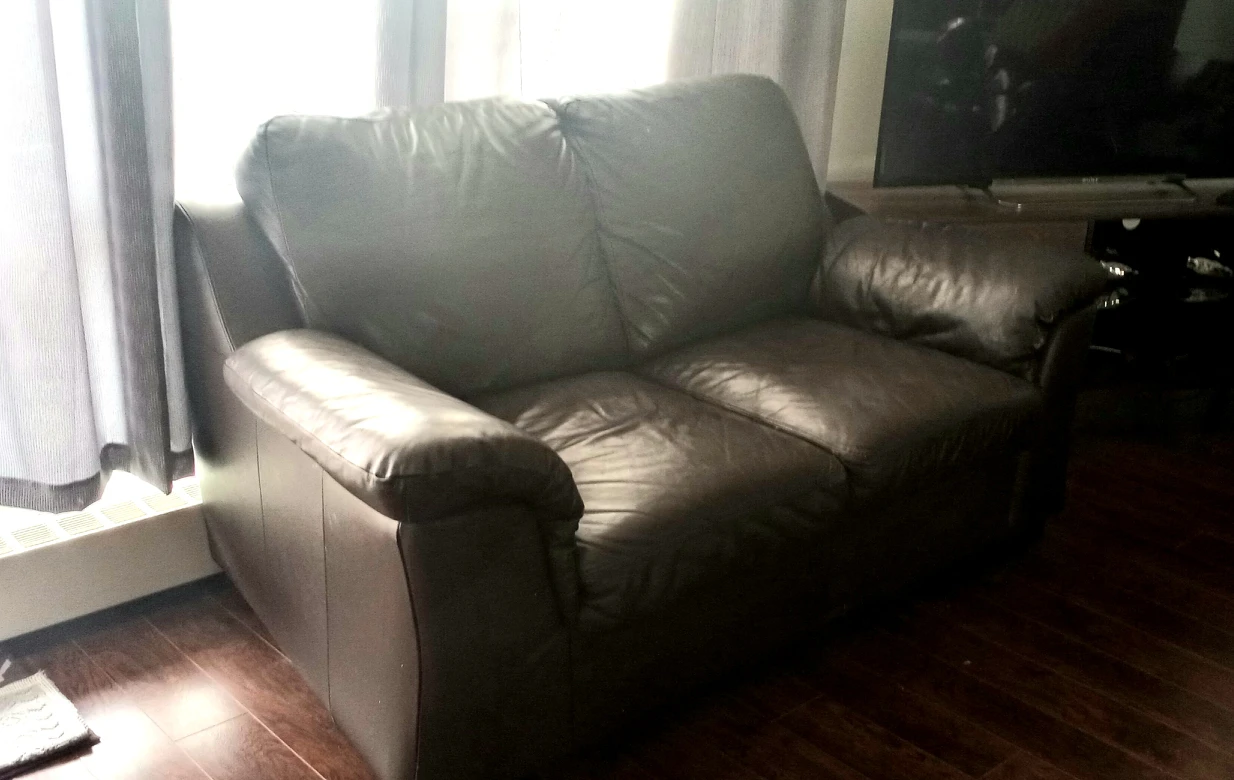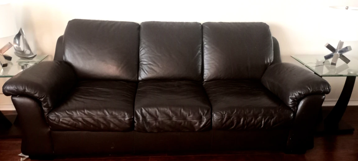 90Pure leather sofa set. 3 seater and 2 seater. Purchased from BRICK. Well used. Sofa with 3 seats: L/W/H= 92/30/34 inch. Sofa with 2 seats: L/W/H= 68/30/34 inch. Pay at the pick up site. Pay in cash or e-transfer.