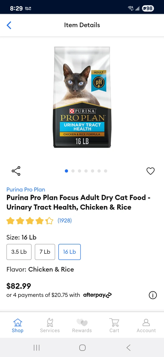 Dry cat food formula. Flavor is chicken and rice. Provides urinary tract health. Bought a second bag and realized my cats do not like this food and aren't eating it. Not opened, not expired.