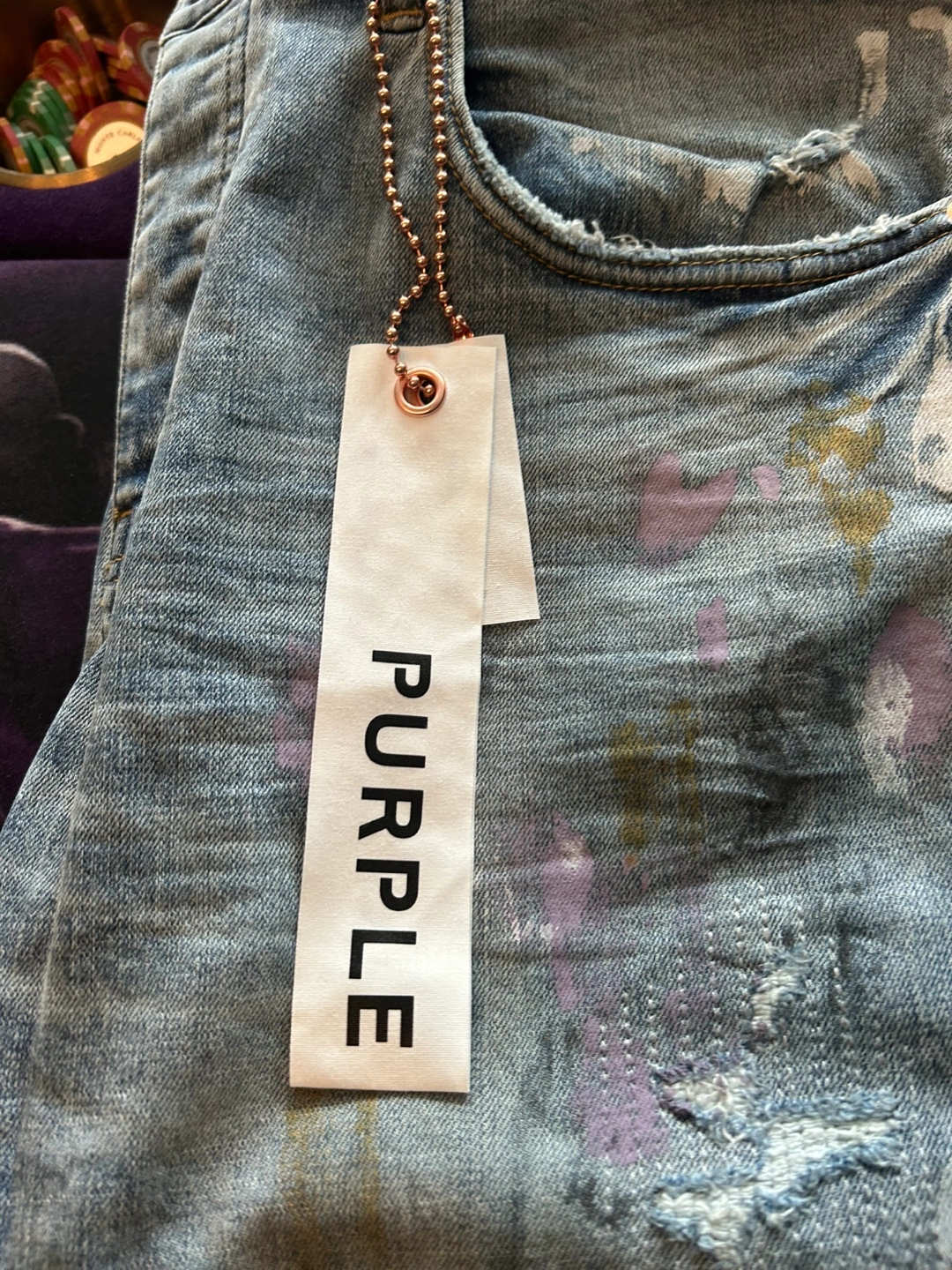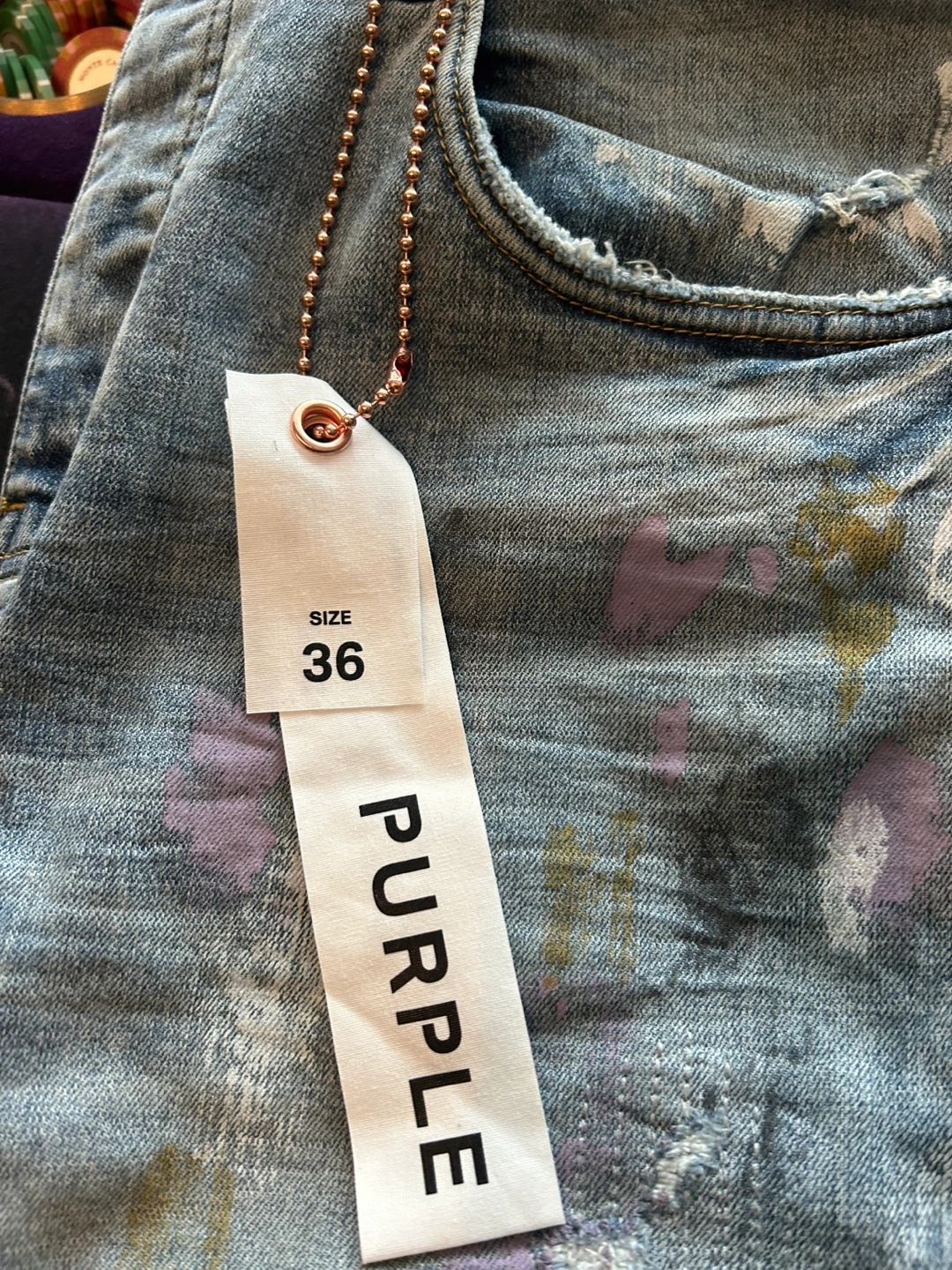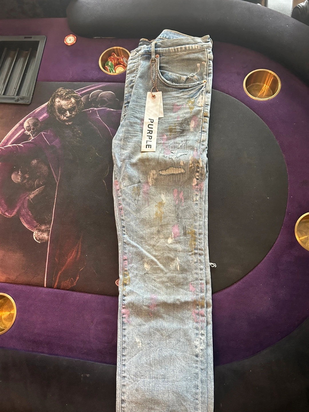 Selling a pair of PURPLE brand denim jeans in size 36! The jeans feature a unique painted design. Brand new