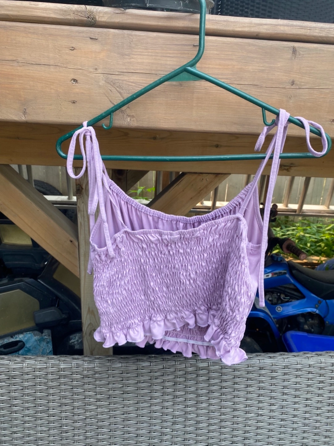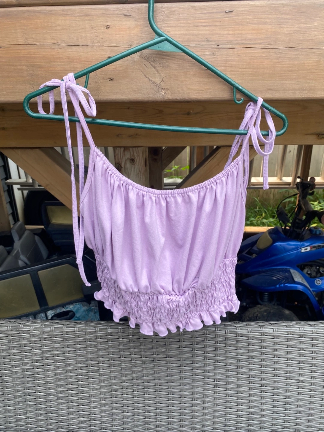 Open to negotiating prices. Cute stretchy purple crop top with ribbed detailing! It's in great condition and ready for a new home