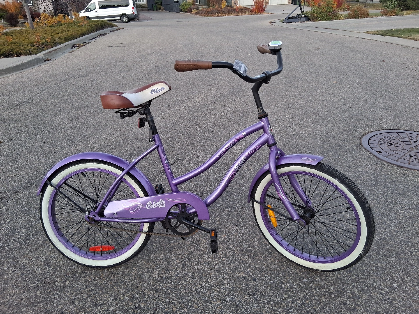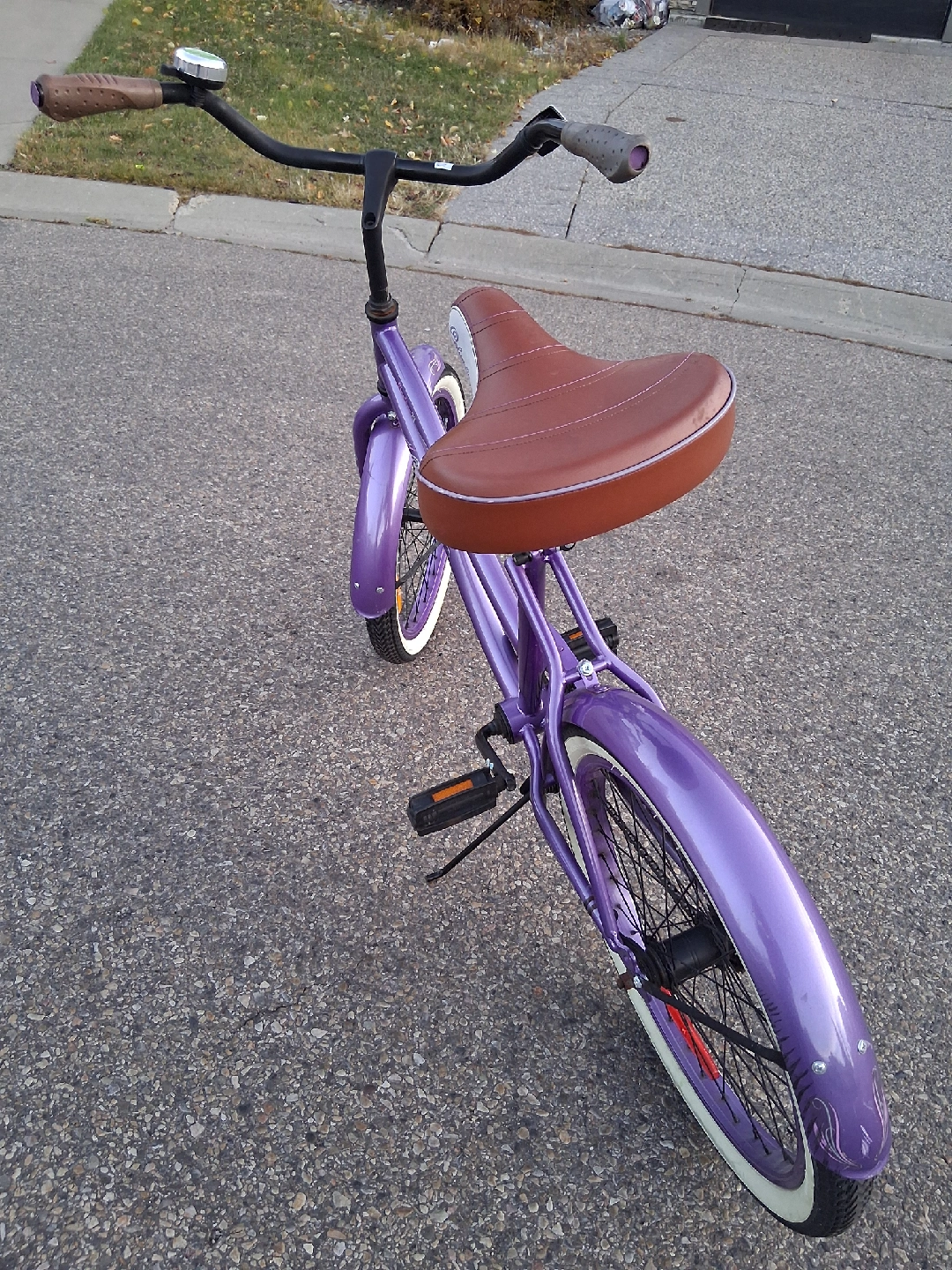 5Selling a lovely purple cruiser bike! It's in great shape and ready for some fun rides around town. The bike features a comfortable brown seat and classic cruiser handlebars. Perfect for leisurely rides on bike paths or around the neighbourhood.