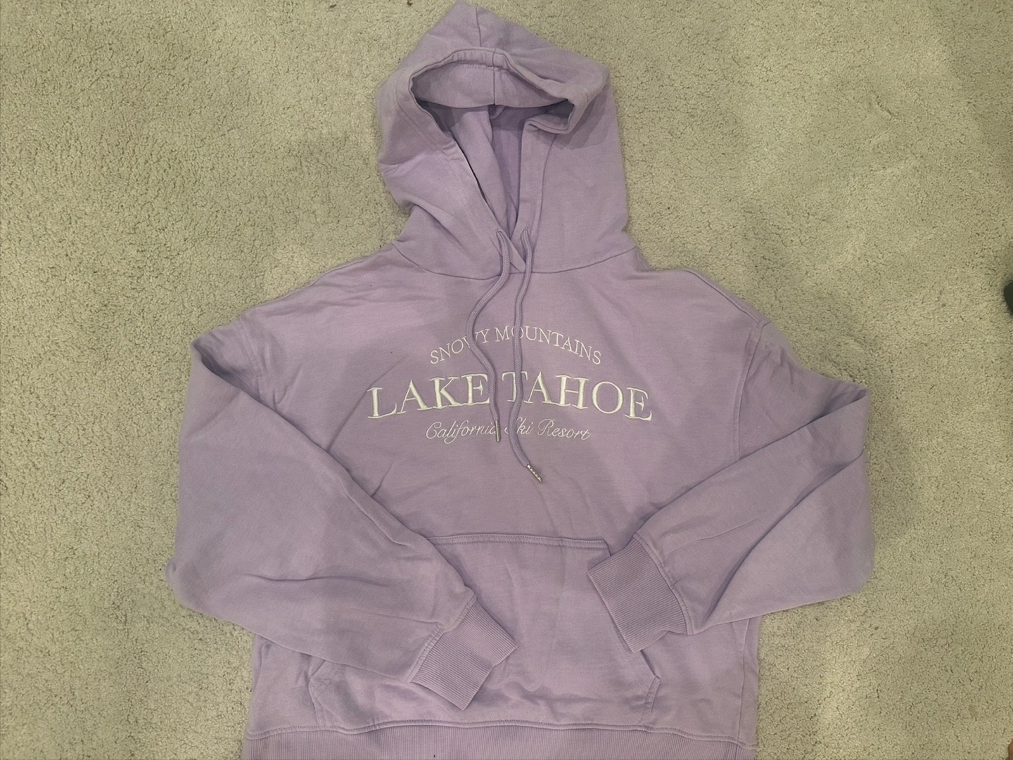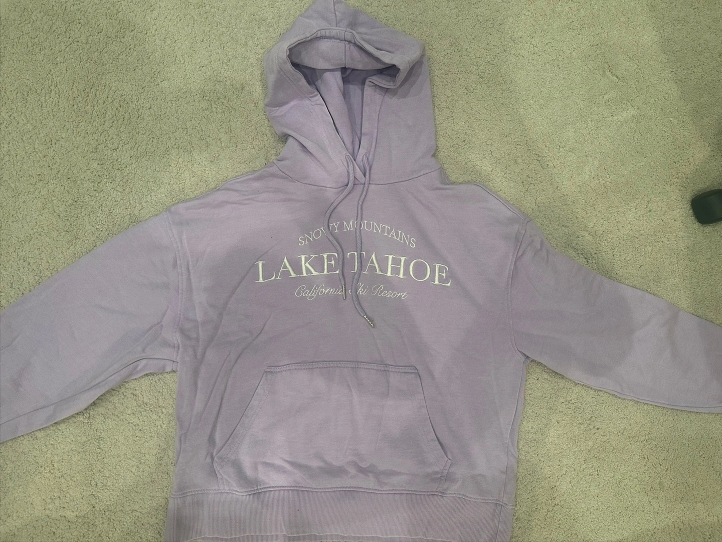 A lovely light purple hoodie. It has a hood with a drawstring. A front pocket as well. A perfect item to wear on a relaxed weekend.