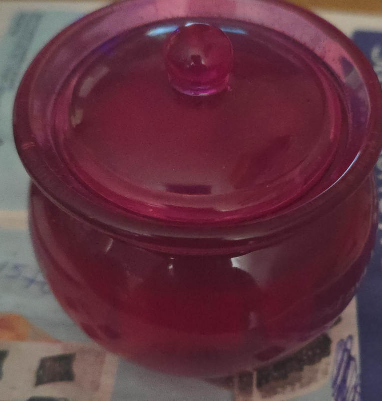 26A cute purple glass jar with a lid. It's perfect for storing small items or adding a pop of colour to your space