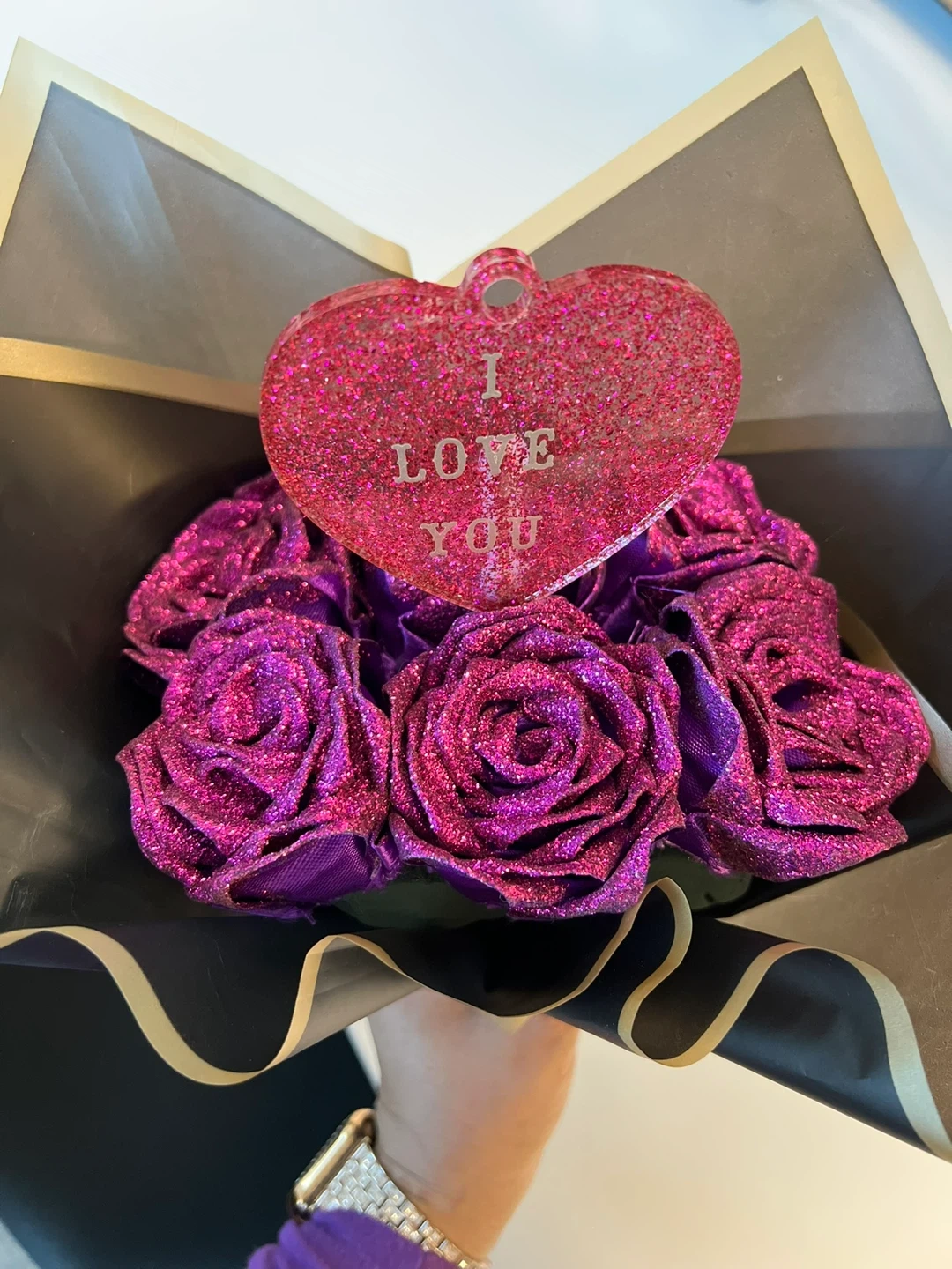 15🌹✨ Elegant & Romantic Surprise someone special with our Ribbon Glitter Roses, beautifully handcrafted to sparkle and shine forever! Each rose is made from high-quality ribbon and touched with fine glitter for a dazzling finish. 💖 Comes with a personalized heart-shaped ornament — add your own message, name, or date to make it truly one-of-a-kind. Perfect for anniversaries, Valentine’s Day, weddings, or just to say “I love you.” These everlasting blooms will never wilt — a keepsake to treasure forever. 🌸 Handcrafted with love 🎀 Personalized just for you 💫 Elegant gift packaging available