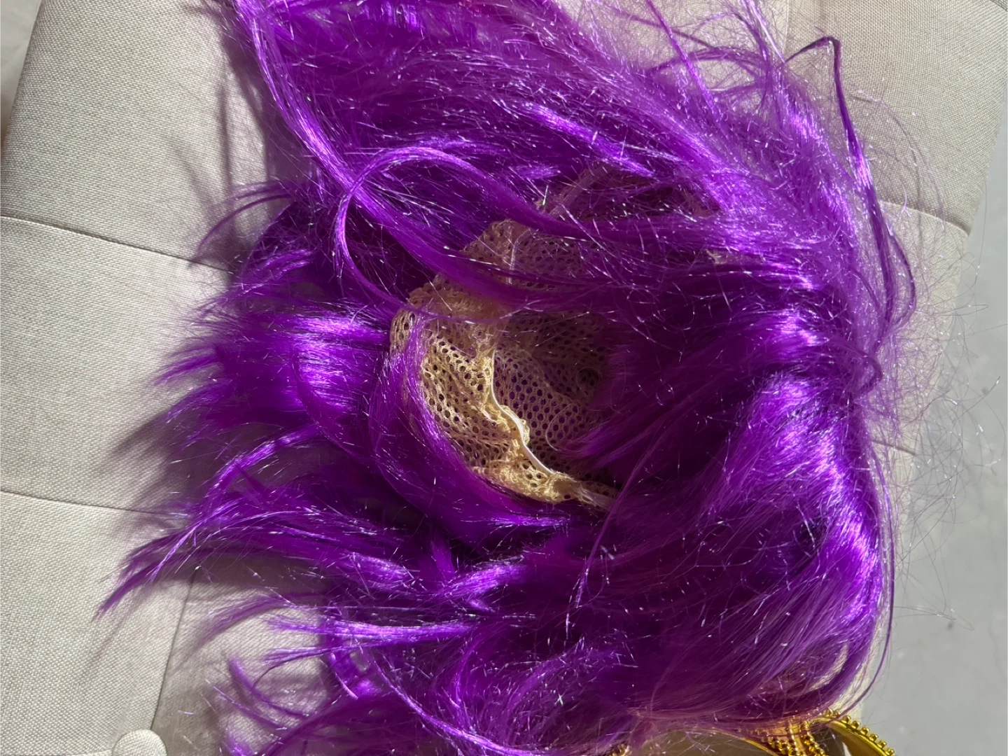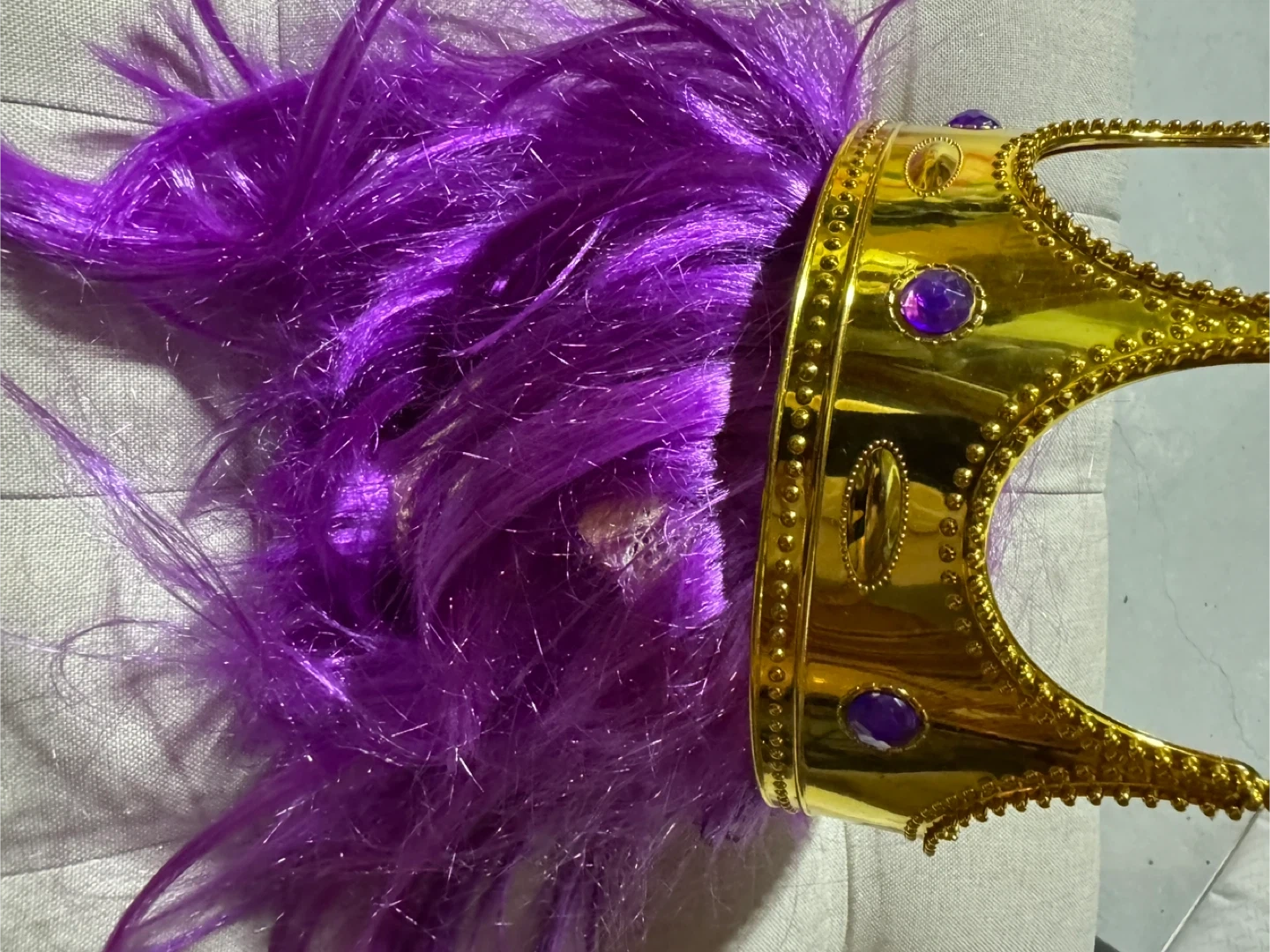 28Selling a vibrant purple wig. Gold-coloured crown with matching purple jewels from Disney on Ice thrown in! It's perfect for costumes or dress-up. The wig is in good condition
