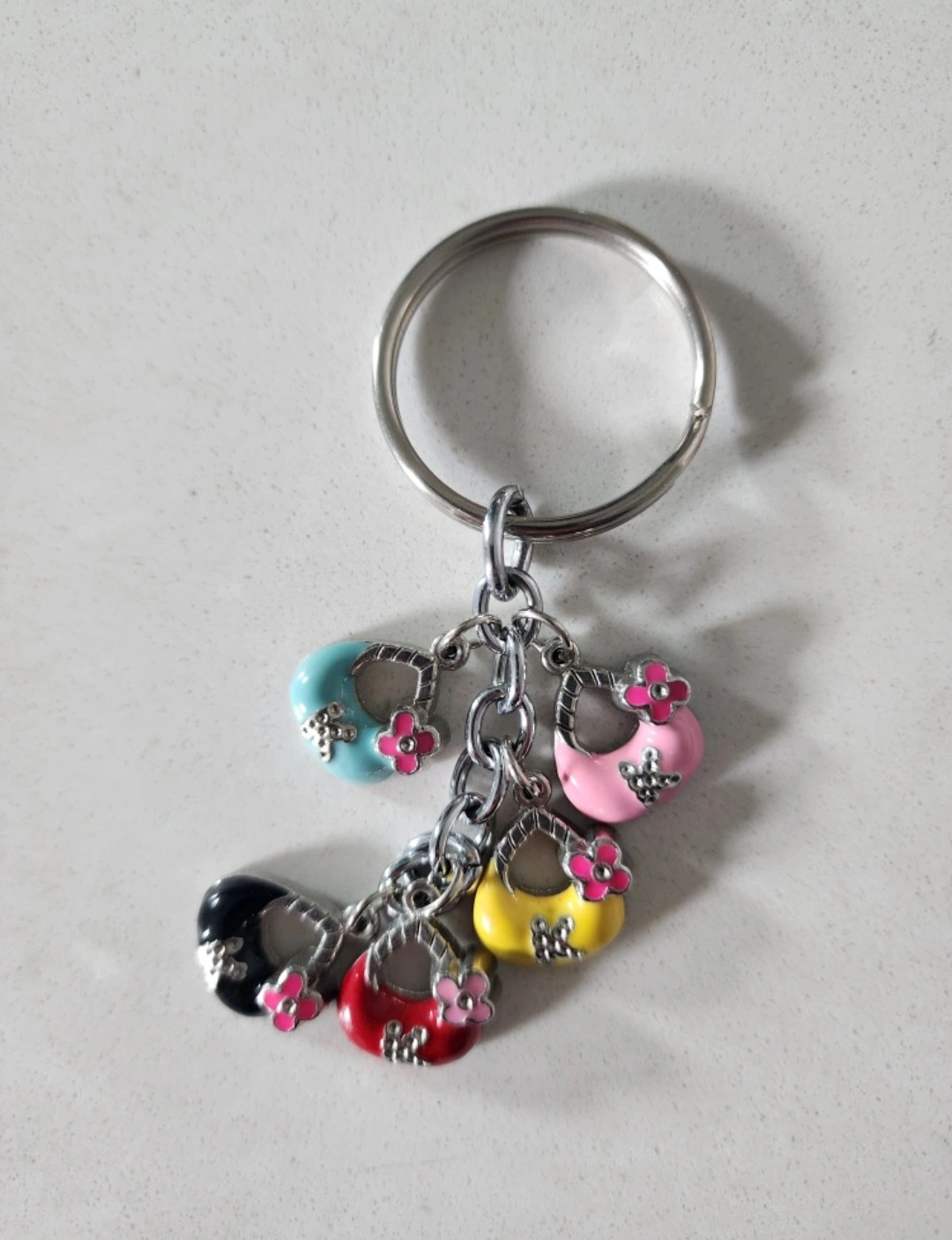 This is a cute keychain with little purse charms in different colours! It's in great condition and ready to add some flair to your keys or bag