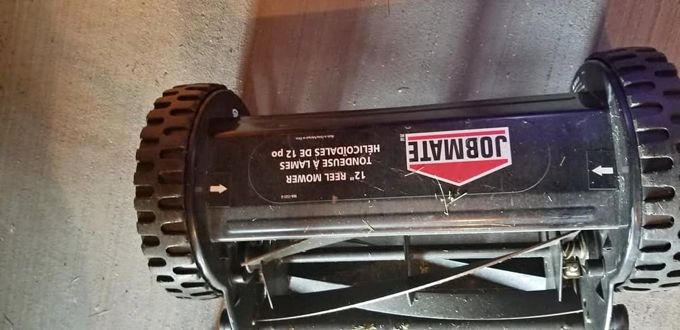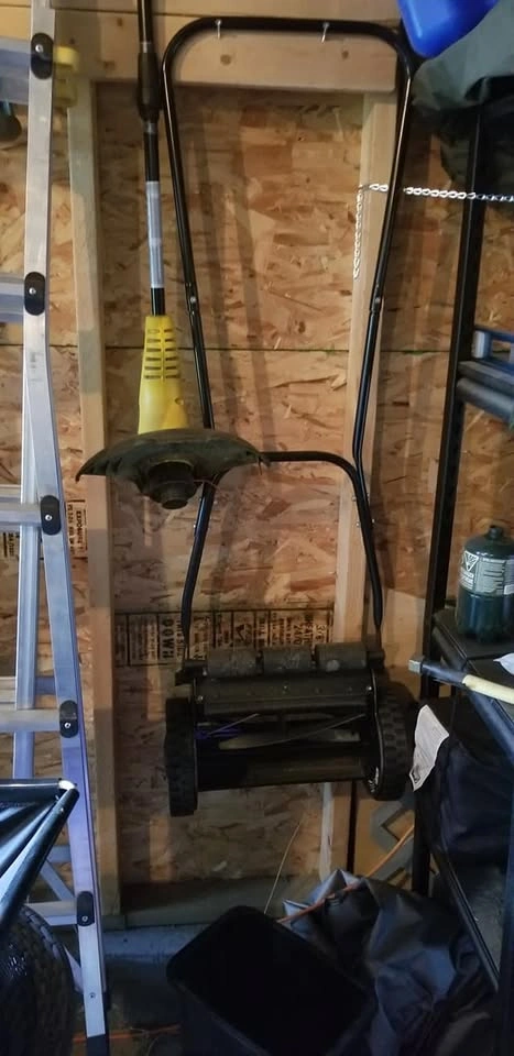 65Push lawn mower, no power or battery required. Decent little thing if you have a small yard. Electric weed Wacker to edge and clean everything up for a nice looking yard.