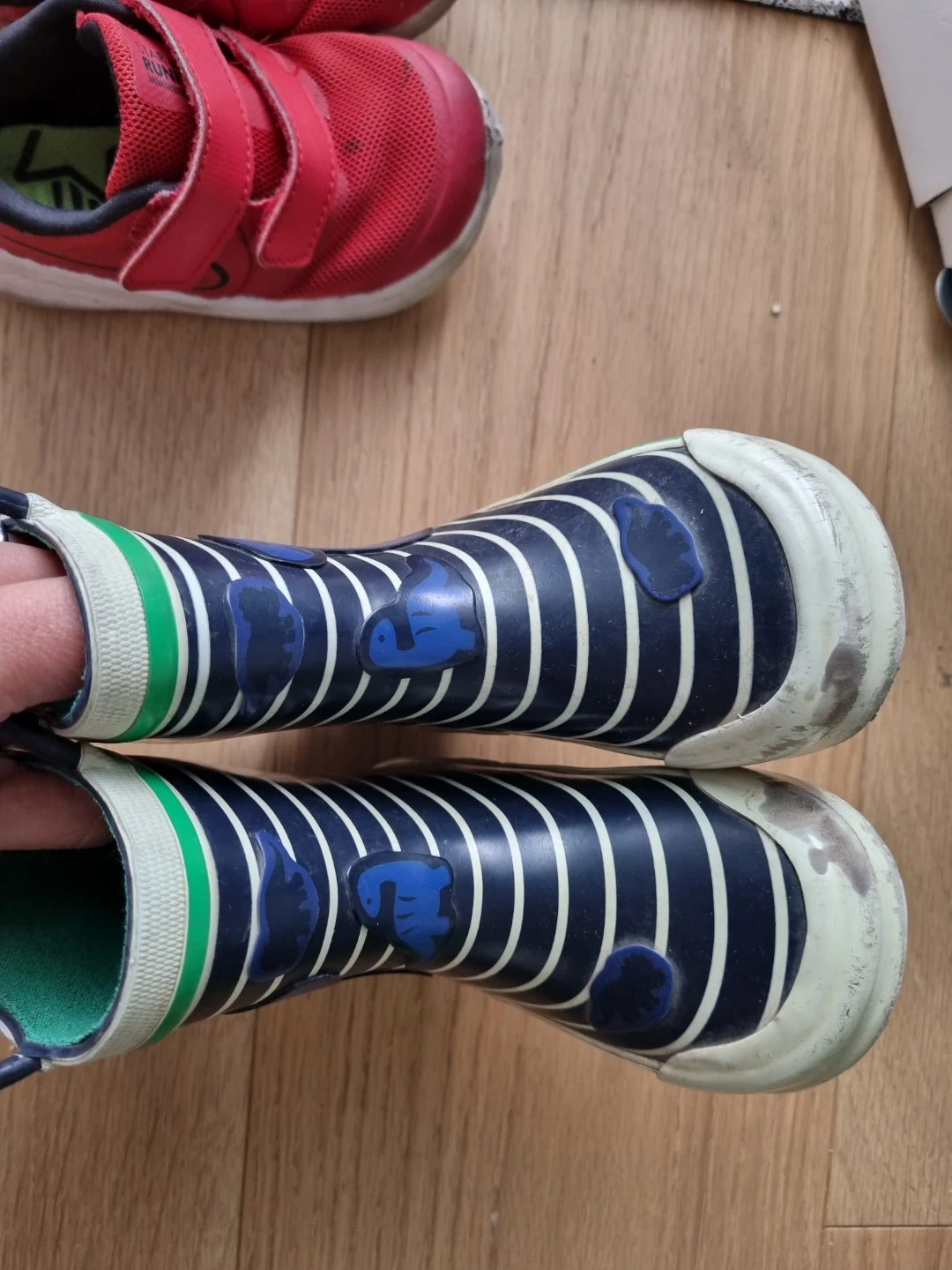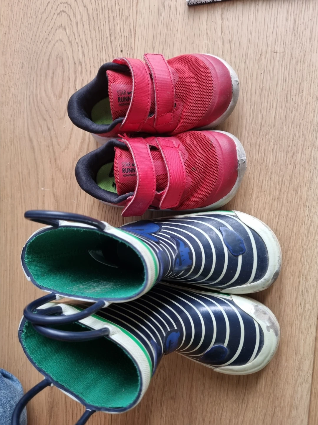 Nike Star Runner Kids Red Shoes and dino rainboots