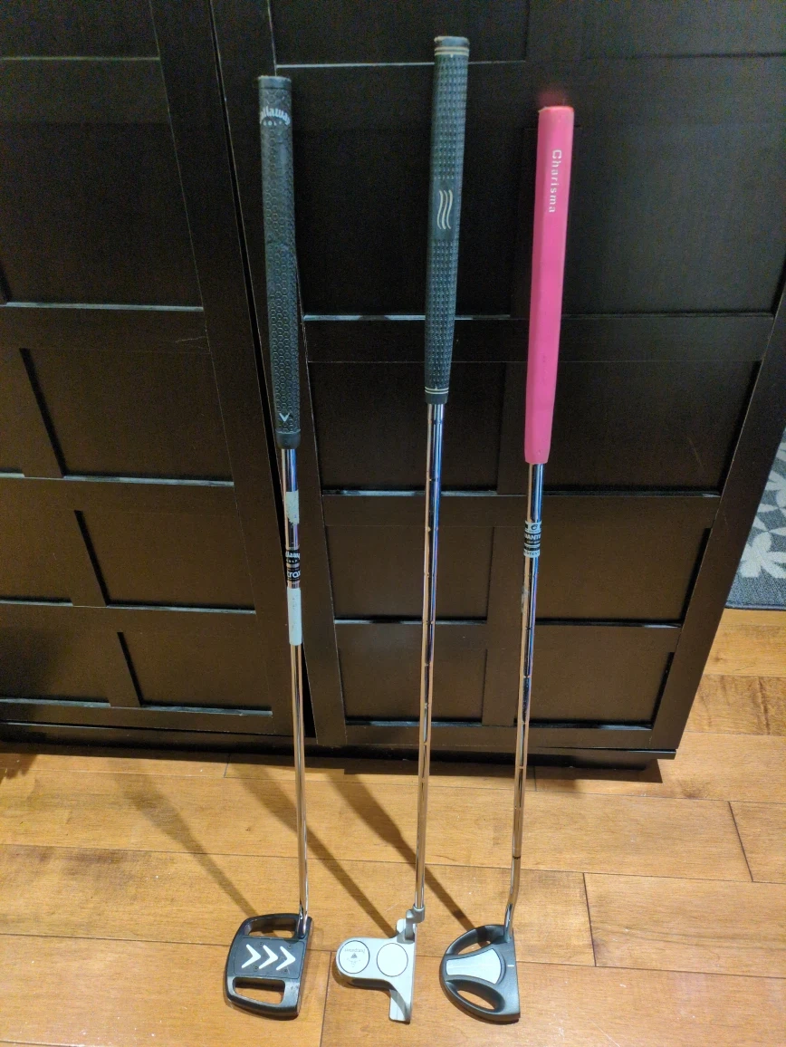 18Jumpstart putter with a white head Callaway putter with a black head Goliath female putter with black head All are in good condition and ready for the green! *Price is for each
