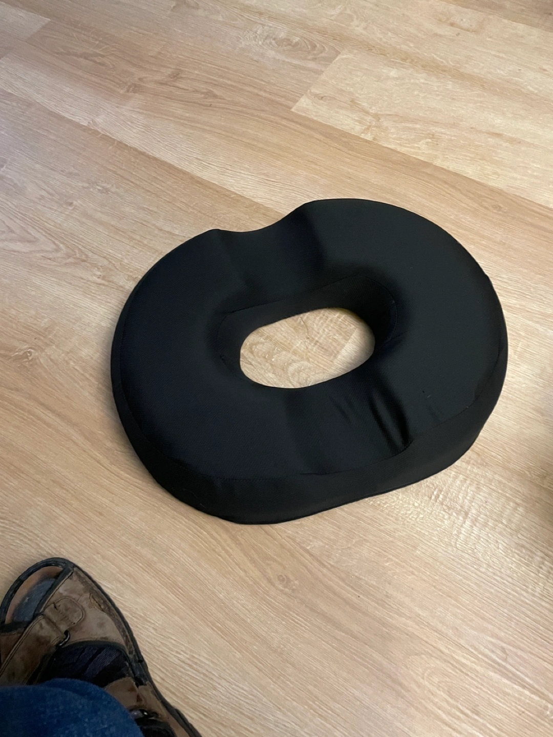 Selling a black donut seat cushion. It's in great condition and provides comfortable support.