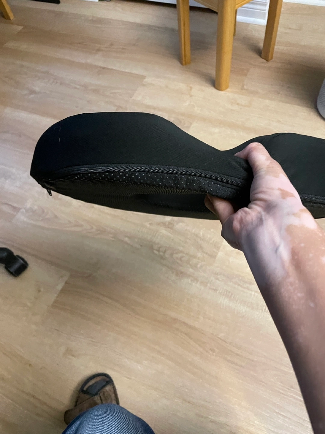 Selling a black donut seat cushion. It's in great condition and provides comfortable support.