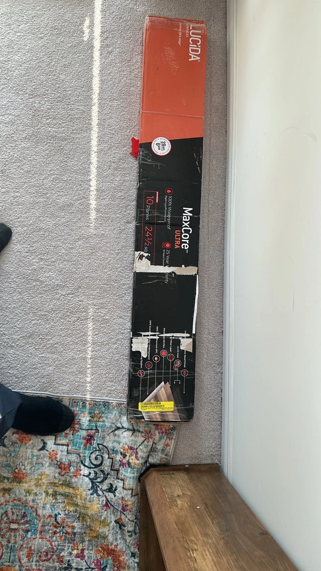 Offering a new box of Lucida Maxcore Ultra flooring, perfect for upgrading your space with a durable and waterproof solution. Each box contains 10 planks covering 24.77 square feet. Selling for $65. Coverage: 24.77 sq ft per box. Planks: 10 per box. Waterproof: Yes. If this ad is still up, it's still available!