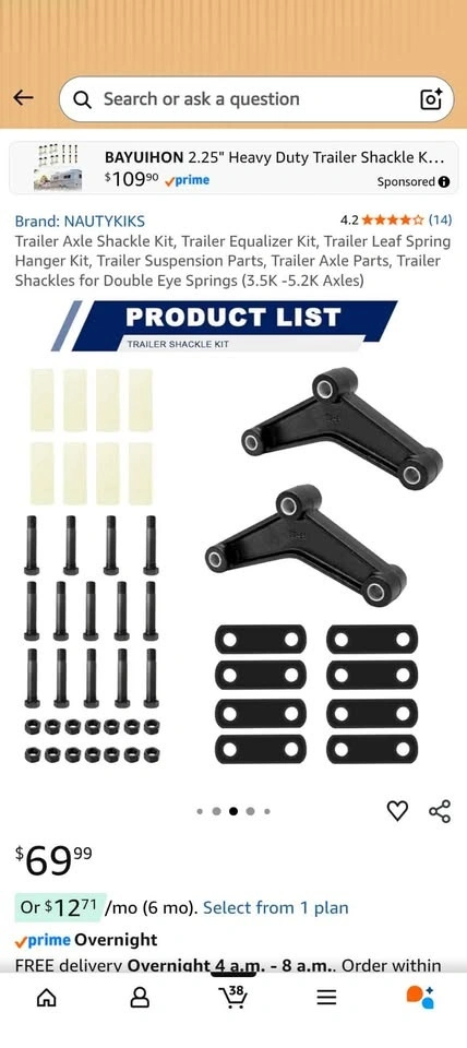 Trailer Axle Shackle Kit, Trailer Equalizer Kit, Trailer Leaf Spring Hanger Kit, Trailer Suspension Parts, Trailer Axle Parts, Trailer Shackles for Double Eye Springs (3.5K -5.2K Axles). Pick up in Richmond.