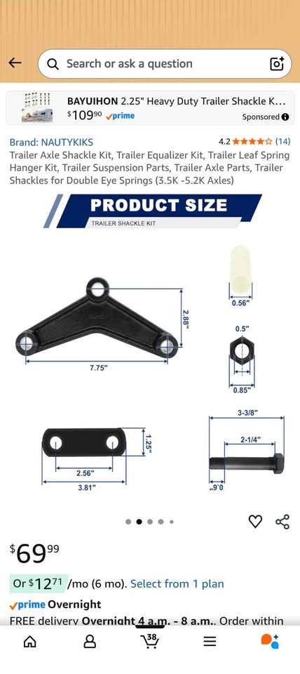 Trailer Axle Shackle Kit, Trailer Equalizer Kit, Trailer Leaf Spring Hanger Kit, Trailer Suspension Parts, Trailer Axle Parts, Trailer Shackles for Double Eye Springs (3.5K -5.2K Axles). Pick up in Richmond.