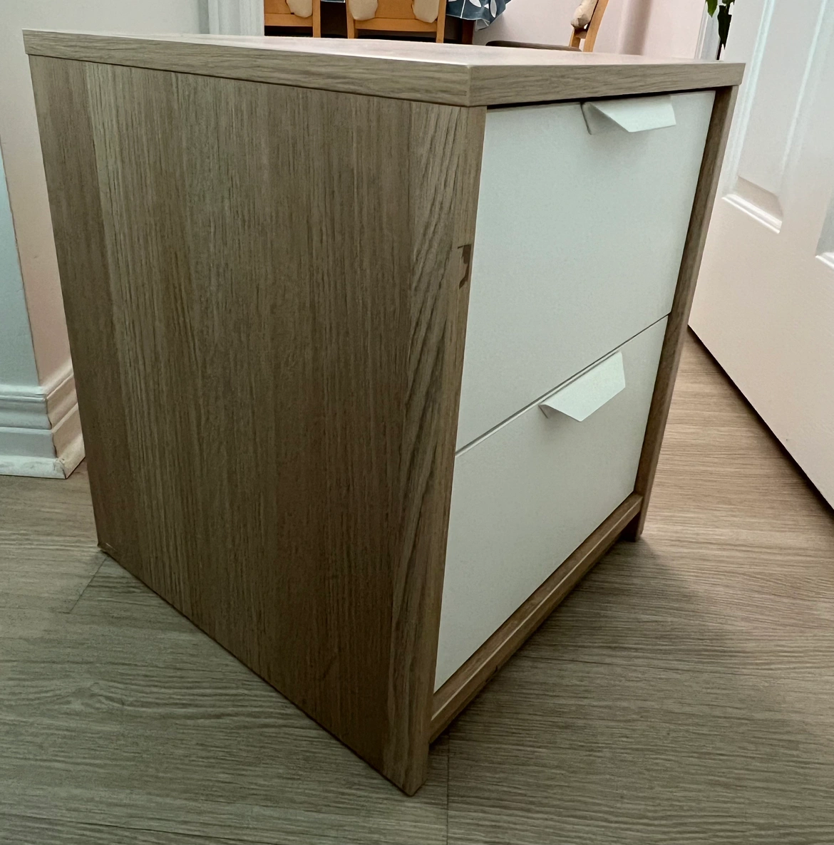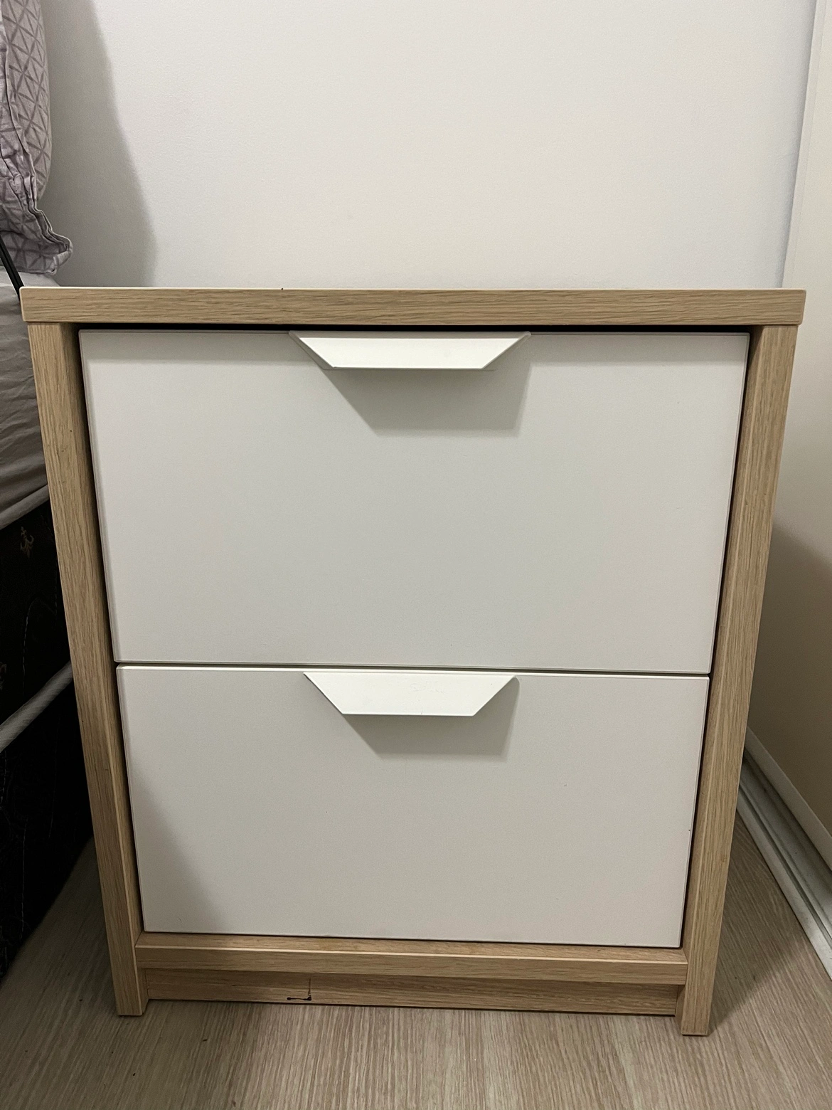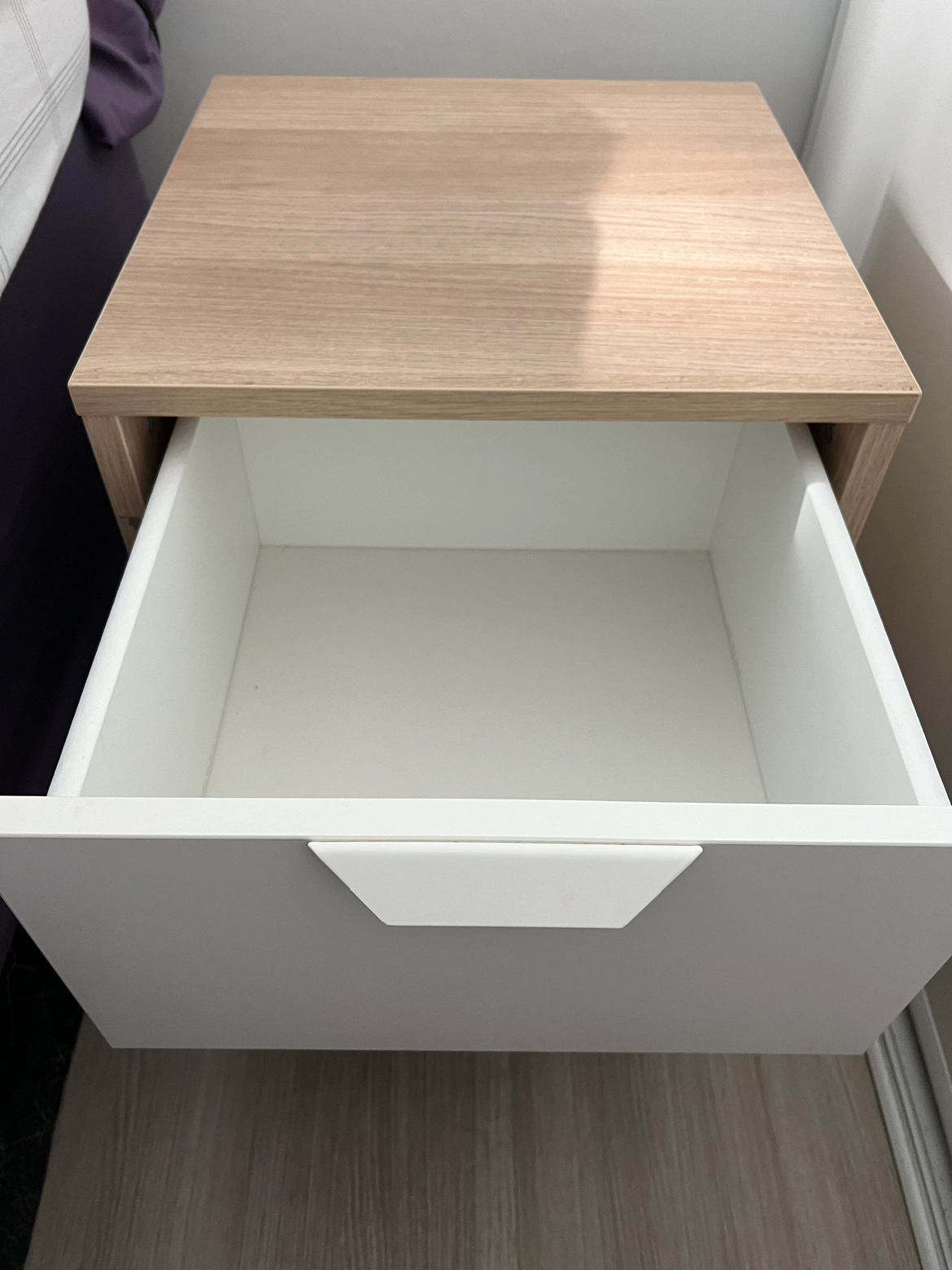 Set of 2 nightstands with two drawers on sale. (White and Cream colour)