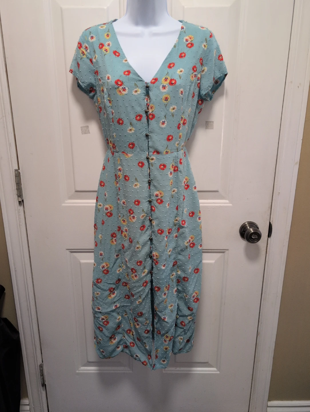 Buy & SellUrban Romantics Floral DressUrban Romantics Floral Dress$15Light blue dress with a ditsy floral print. It's a size small and made of 100% rayon. The dress has a V-neck and button-up front.ConditionGoodSizeSWHERE TO MEETCheck LocationView MapSELLERverifiedNathalieClarence-Rockland650 reviews0 chats·0 favorites·1 viewsSEND CHAT TO SELLERHi Nathalie! I’m interested in your listing.Hi Nathalie! I’m interested in your listing.Get the Karrot app to chatSign In to chat