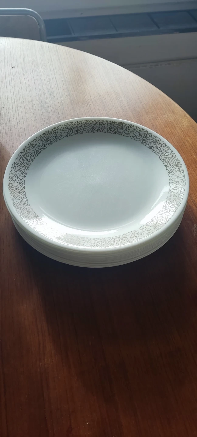 Selling a set of 13 large Corelle dinner plates . 10 inches size. Made in USA. They feature a delicate floral pattern around the rim. Perfect for everyday use or special occasions!