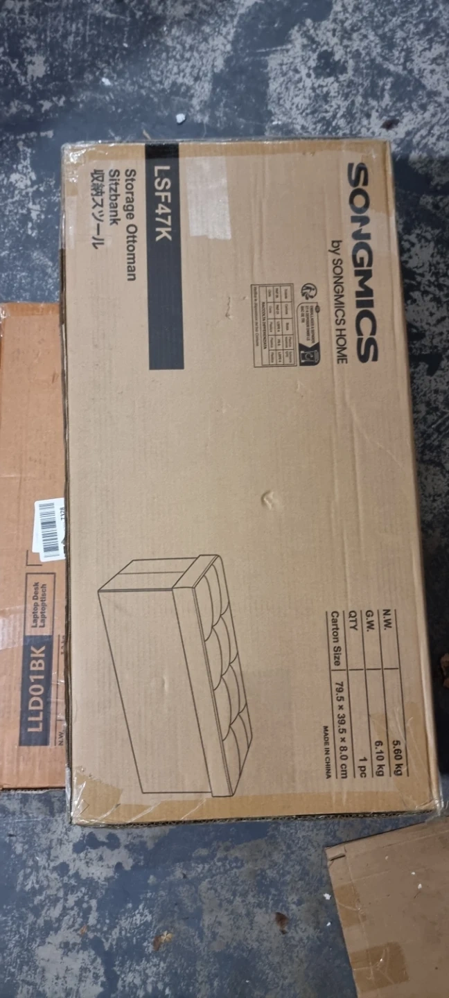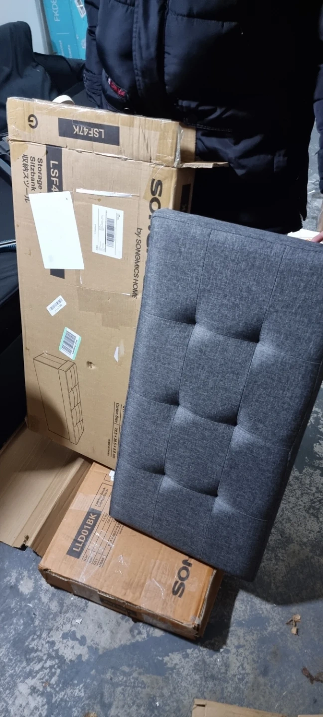 This SONGMICS storage ottoman is upholstered in a stylish grey fabric. It's designed for storage and provides extra seating. The ottoman's compact size makes it a versatile addition to any room.