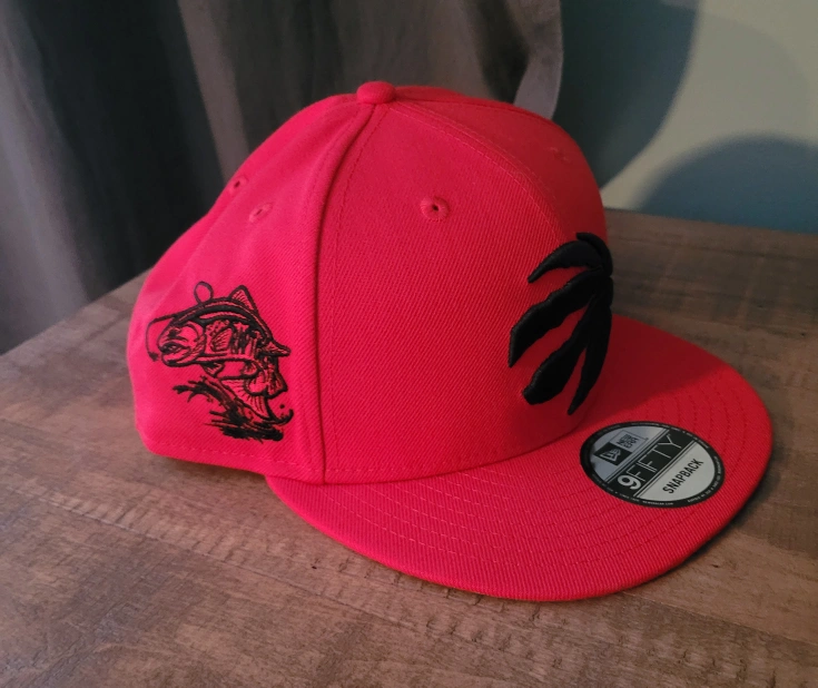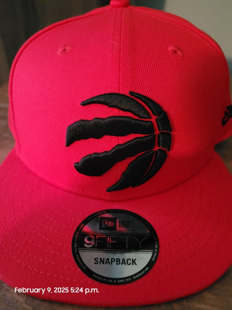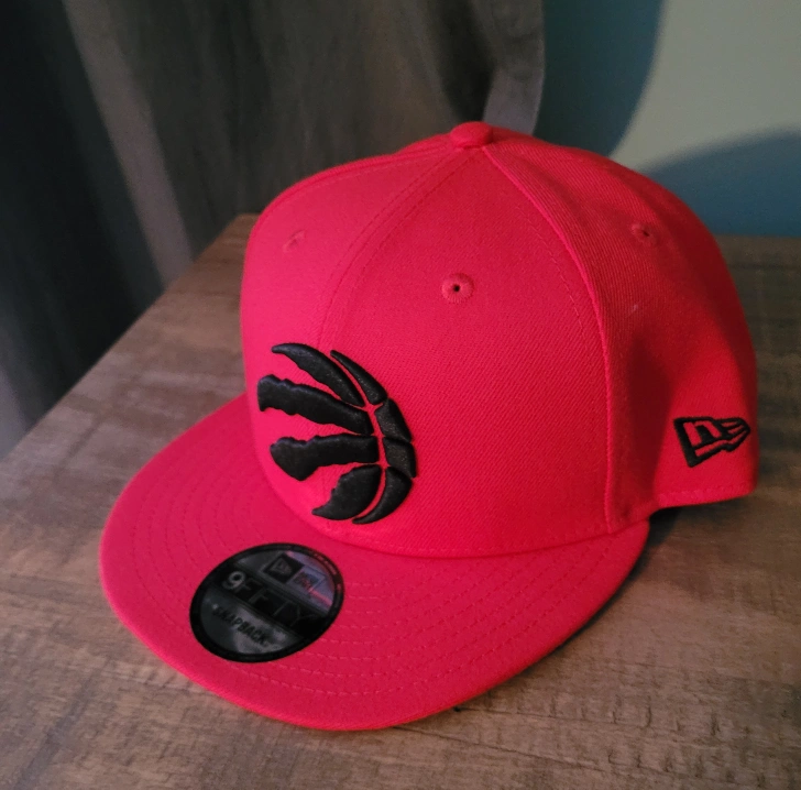 Red Toronto Raptors hat. Features team logo. New Era 9Fifty snapback.