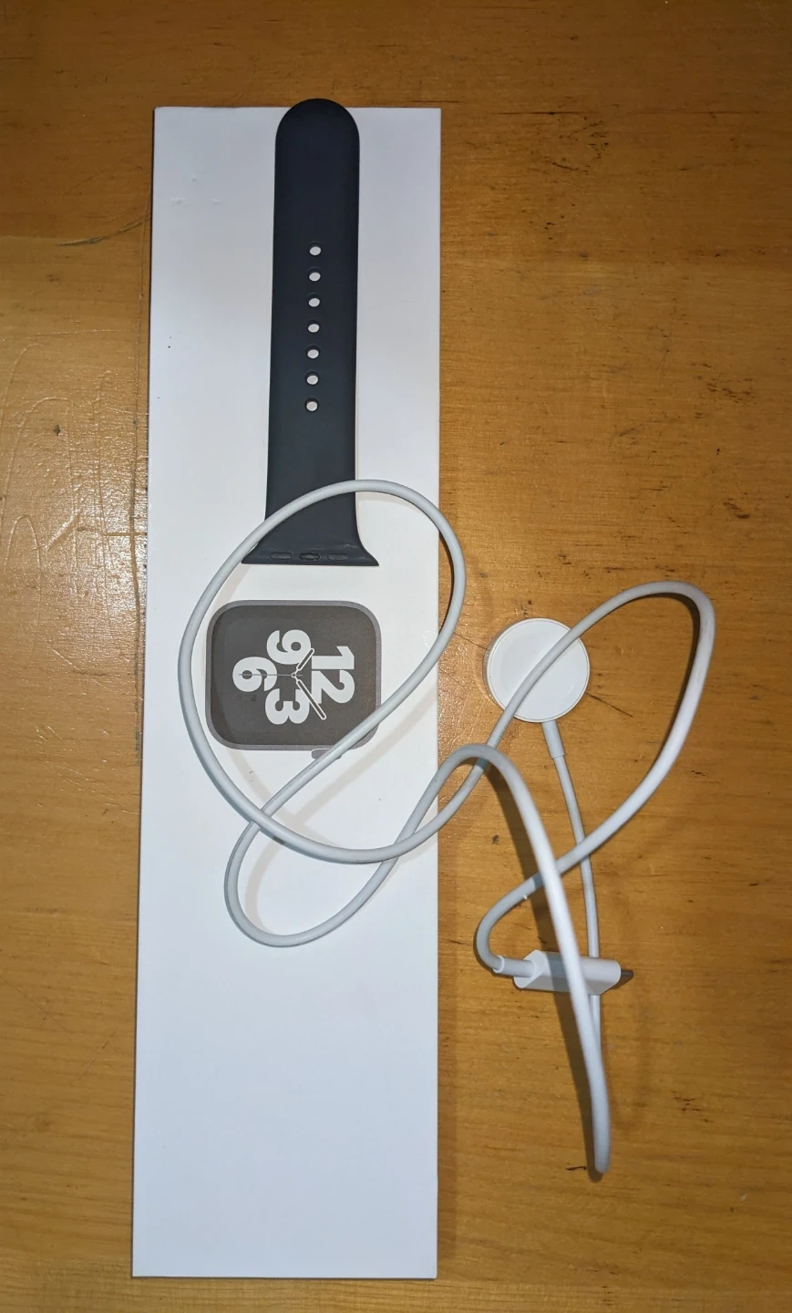 Battery health 100% as the battery cycles were never higher than 5-6 times of full charge. The watch is unlocked, unpaired for new owner.