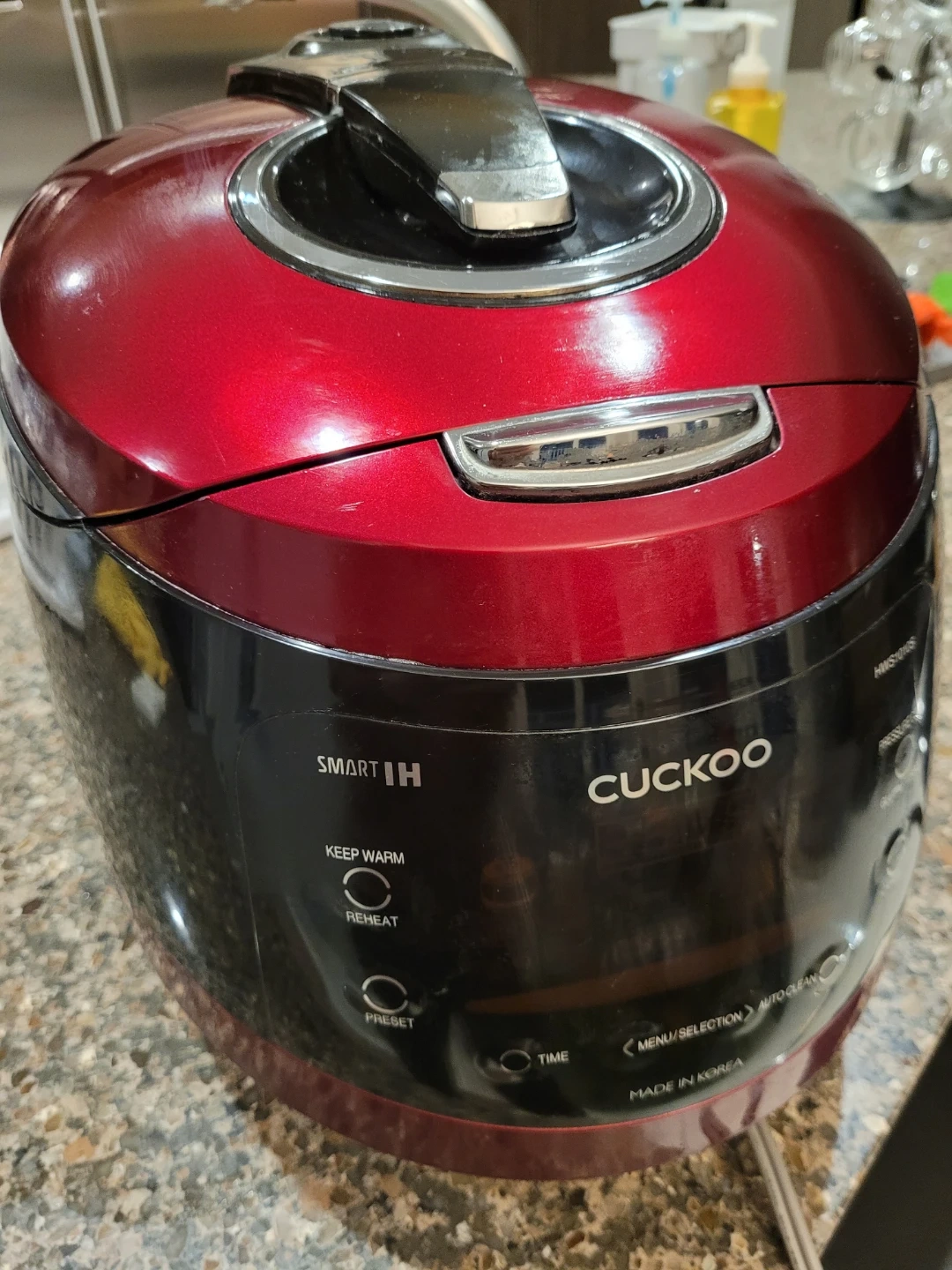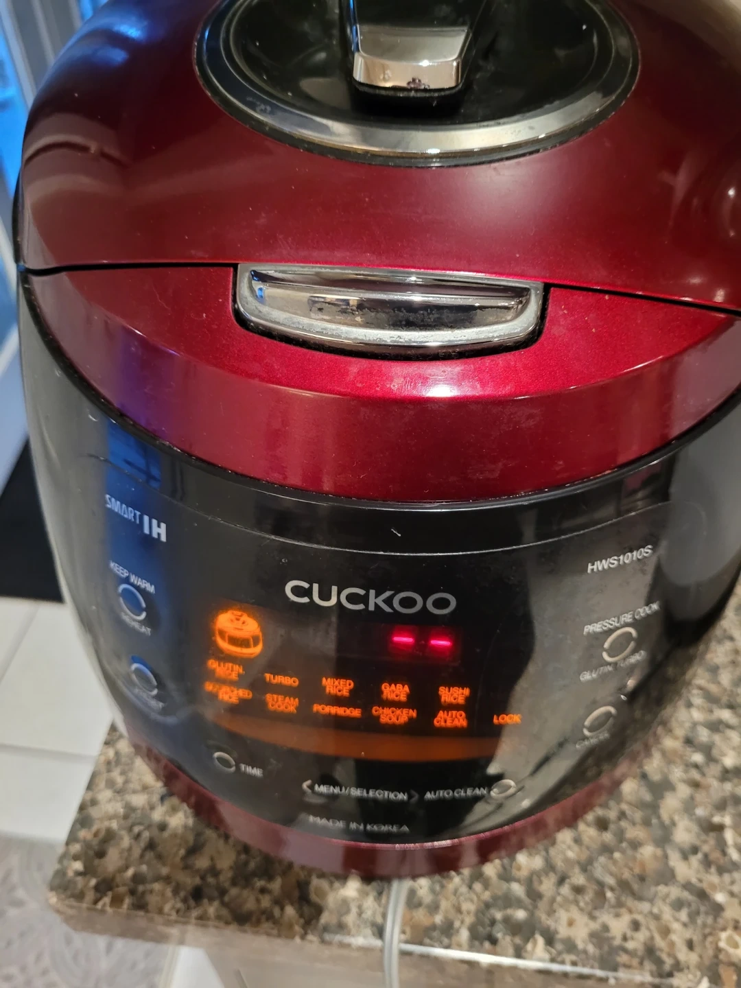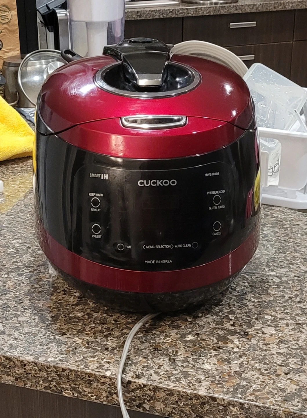 This is a 10 cup rice cooker. II am selling it because I have a smaller cuckoo rice cooker for myself. As shown on pictures, there are about two spots where the inner pot coating has been peeled off, but the rice cooker works well.