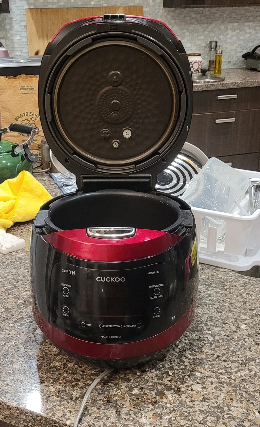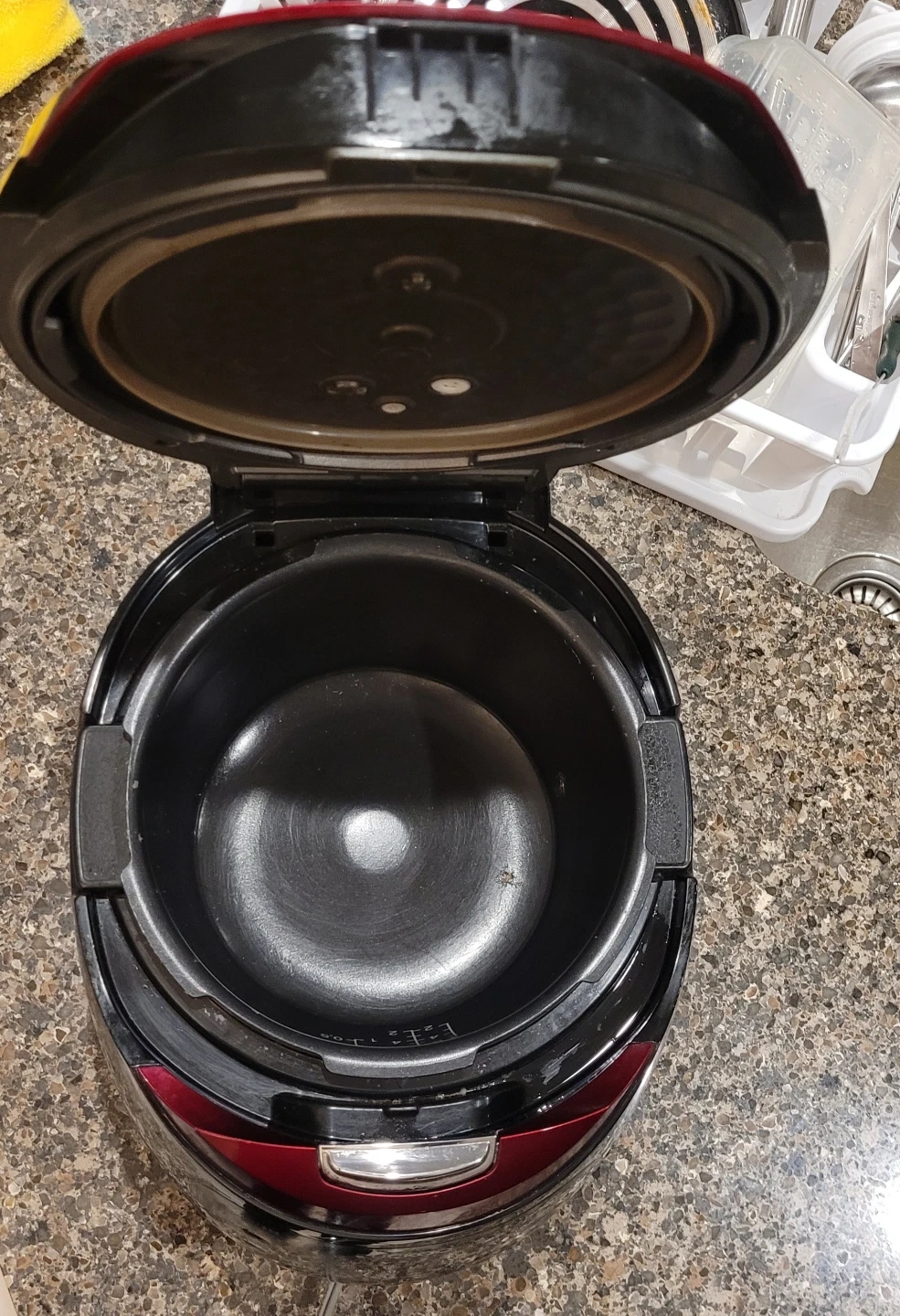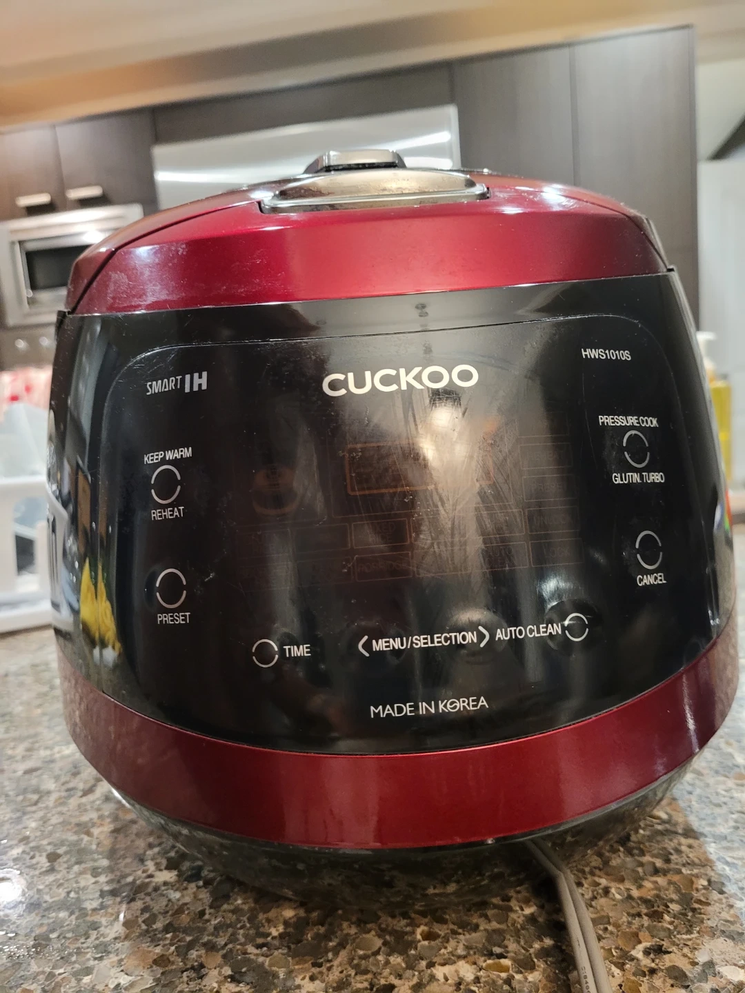 This is a 10 cup rice cooker. II am selling it because I have a smaller cuckoo rice cooker for myself. As shown on pictures, there are about two spots where the inner pot coating has been peeled off, but the rice cooker works well.