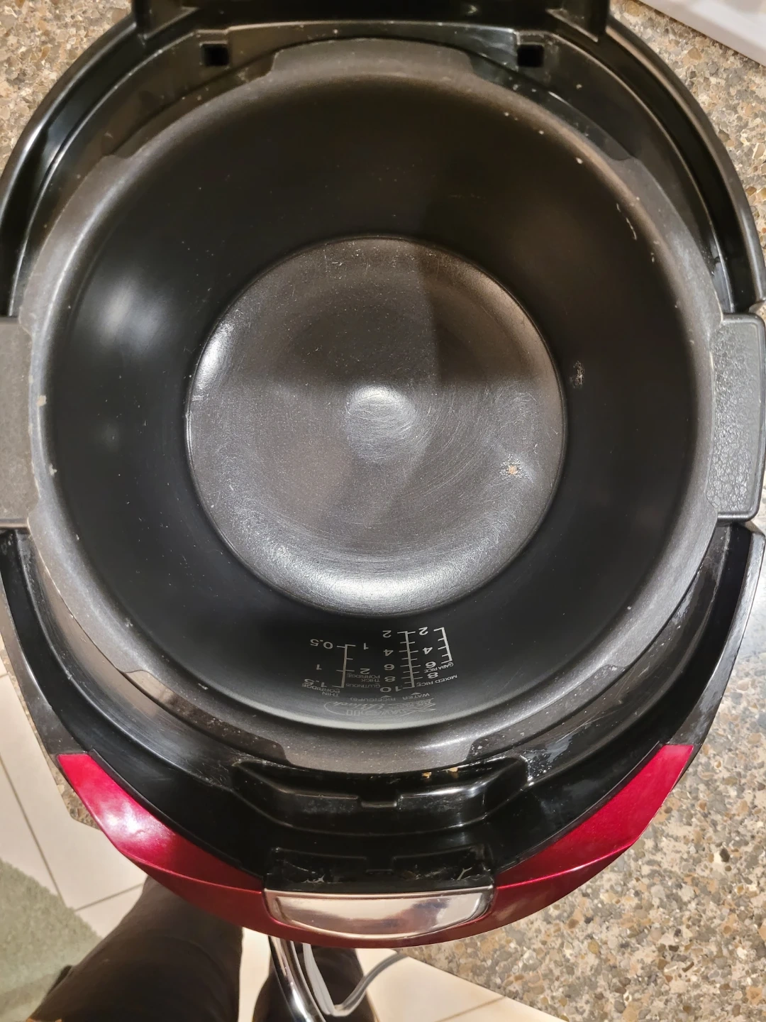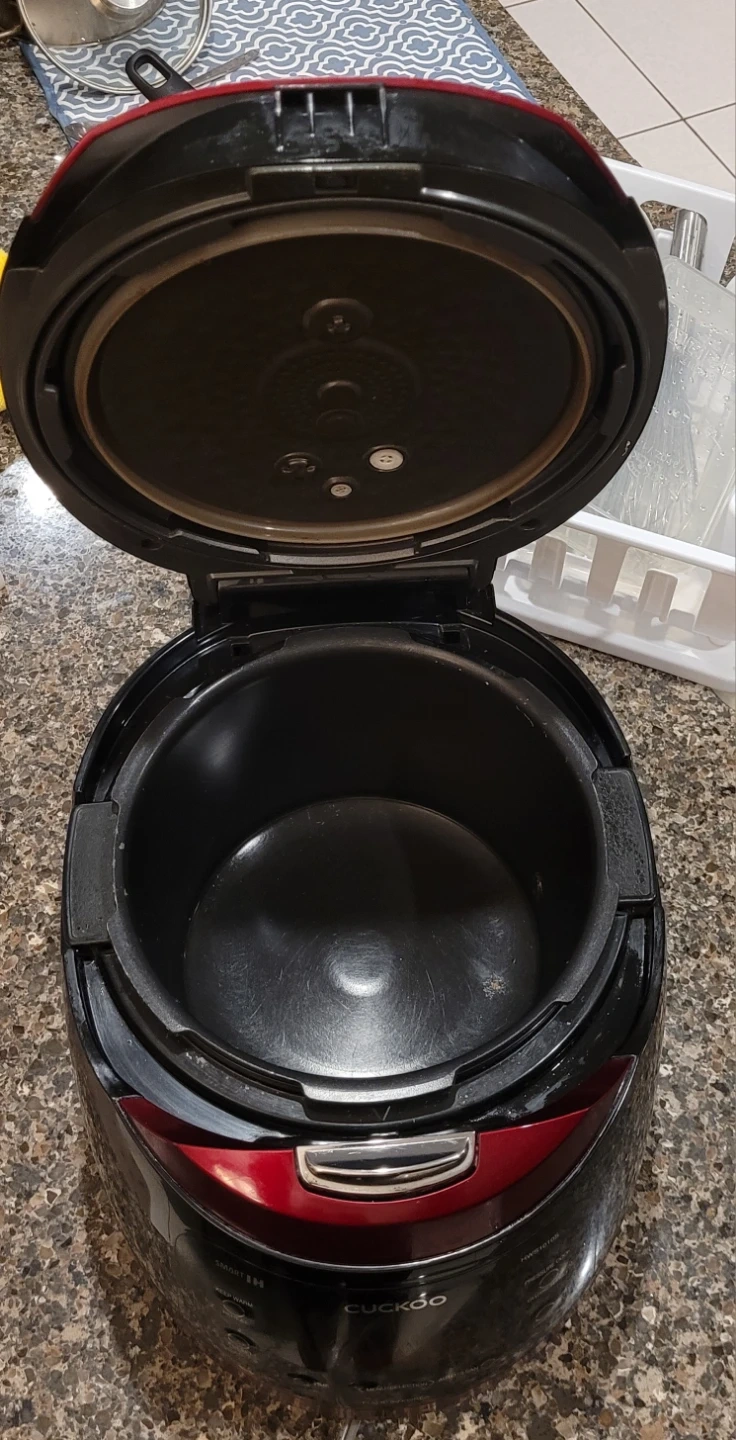 This is a 10 cup rice cooker. II am selling it because I have a smaller cuckoo rice cooker for myself. As shown on pictures, there are about two spots where the inner pot coating has been peeled off, but the rice cooker works well.