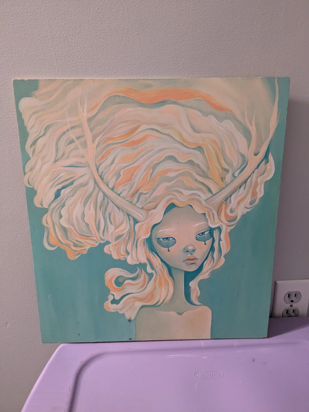 thrifted this forever ago but now it's time for it to have a new home! not sure who the artist is as it's not signed. absolutely beautiful tho! pick-up near the intersection of Fraser and Kingsway.