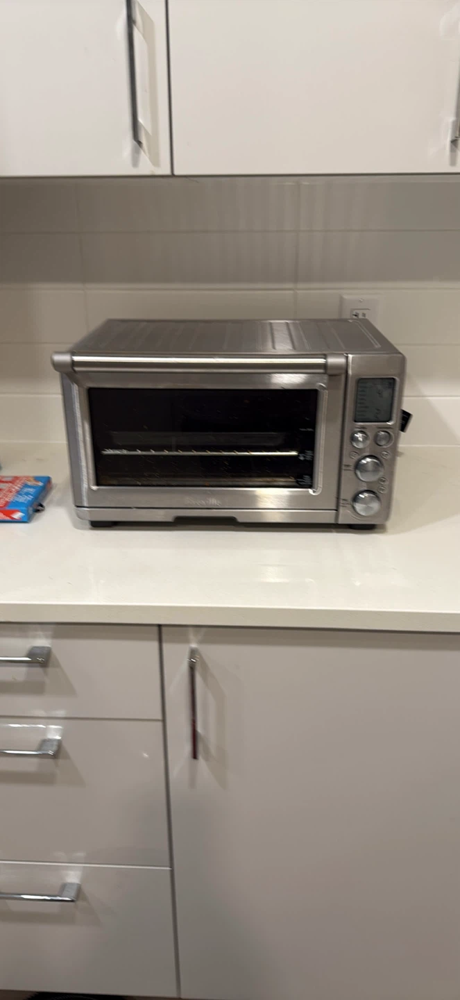 Selling a Breville toaster oven. It's in good working condition and ready for a new home! It does not have an air fryer function but just about everything else!