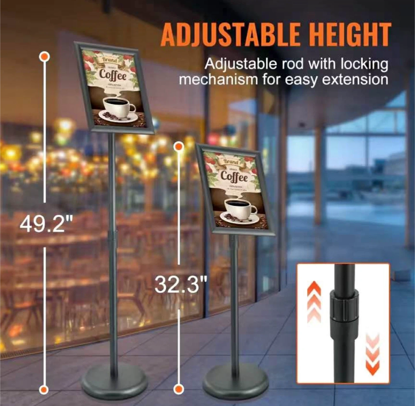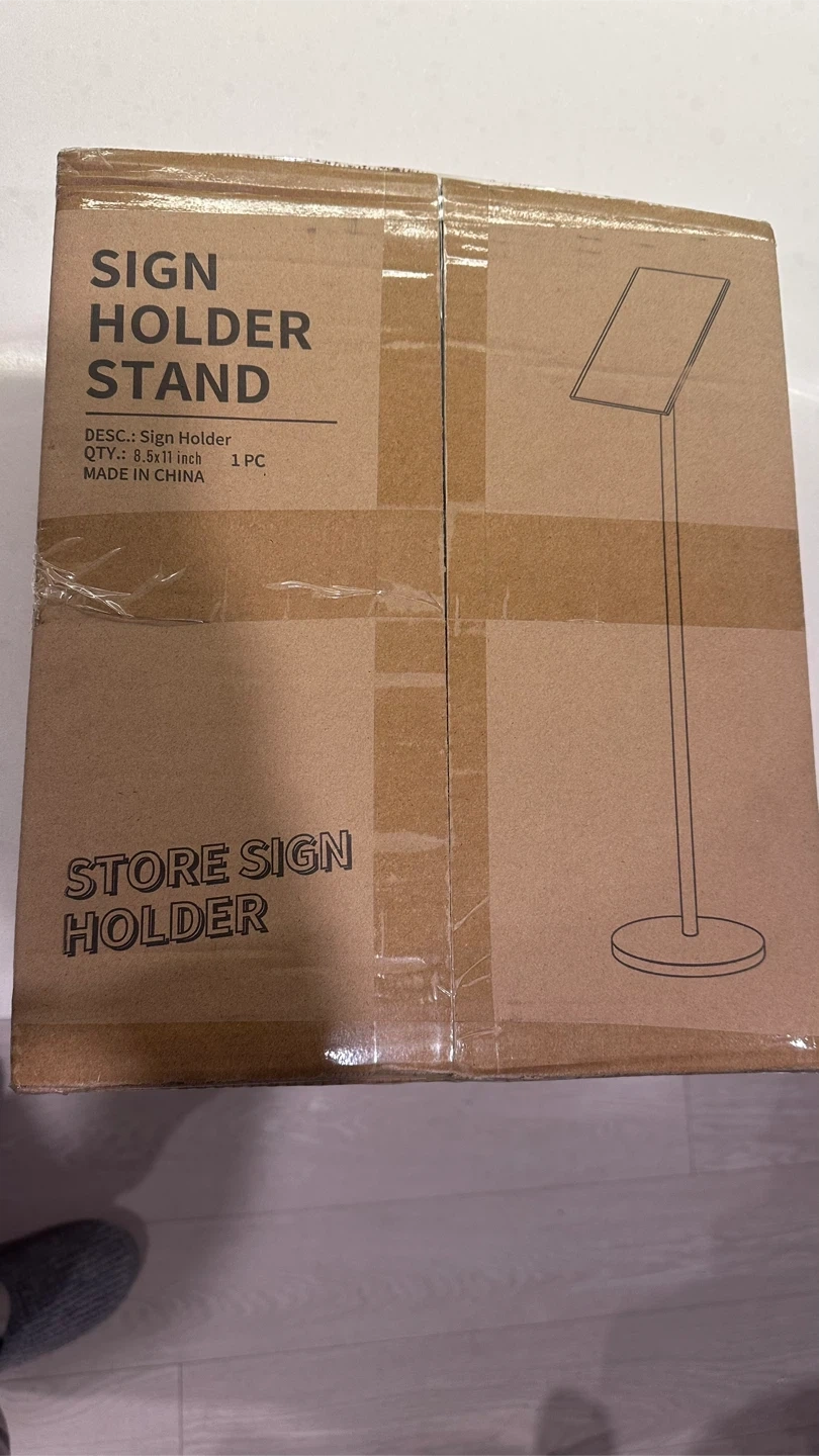 Selling a sign holder stand that holds 8.5x11 inch signs! It has an adjustable height and a 360° rotating frame, so posters can be adjusted to any angle. It also has an adjustable rod with a locking mechanism for easy extension. Comes in the original box!