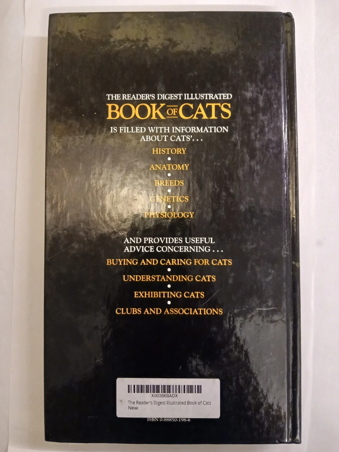 This illustrated book is filled with information about cats, covering history, anatomy, breeds, genetics, and physiology. It also provides useful advice concerning buying and caring for cats, understanding cats, exhibiting cats, and clubs and associations.