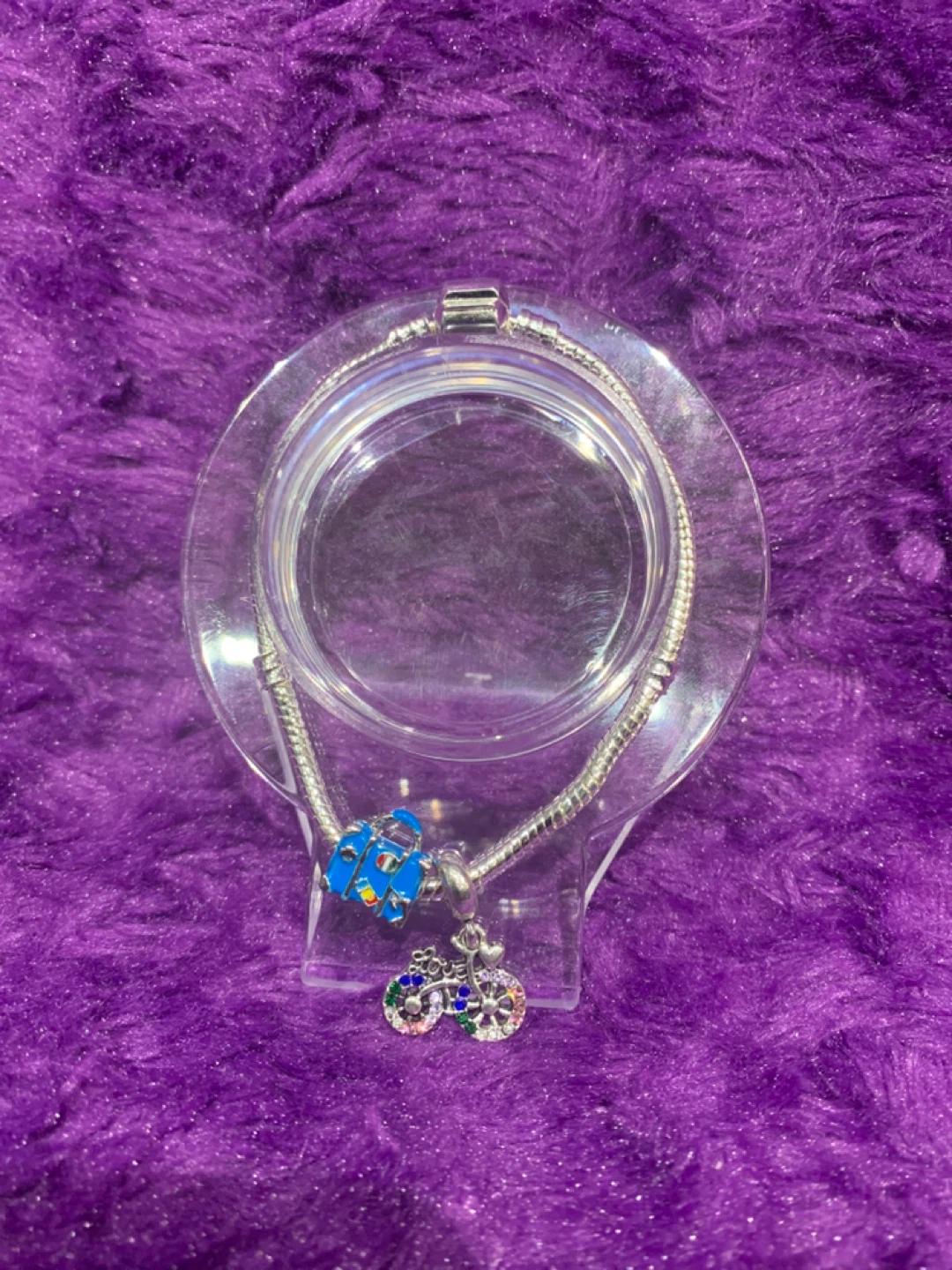 Silver S925 BraceletwithSilver Blue Suitcase and Bicycle Charms