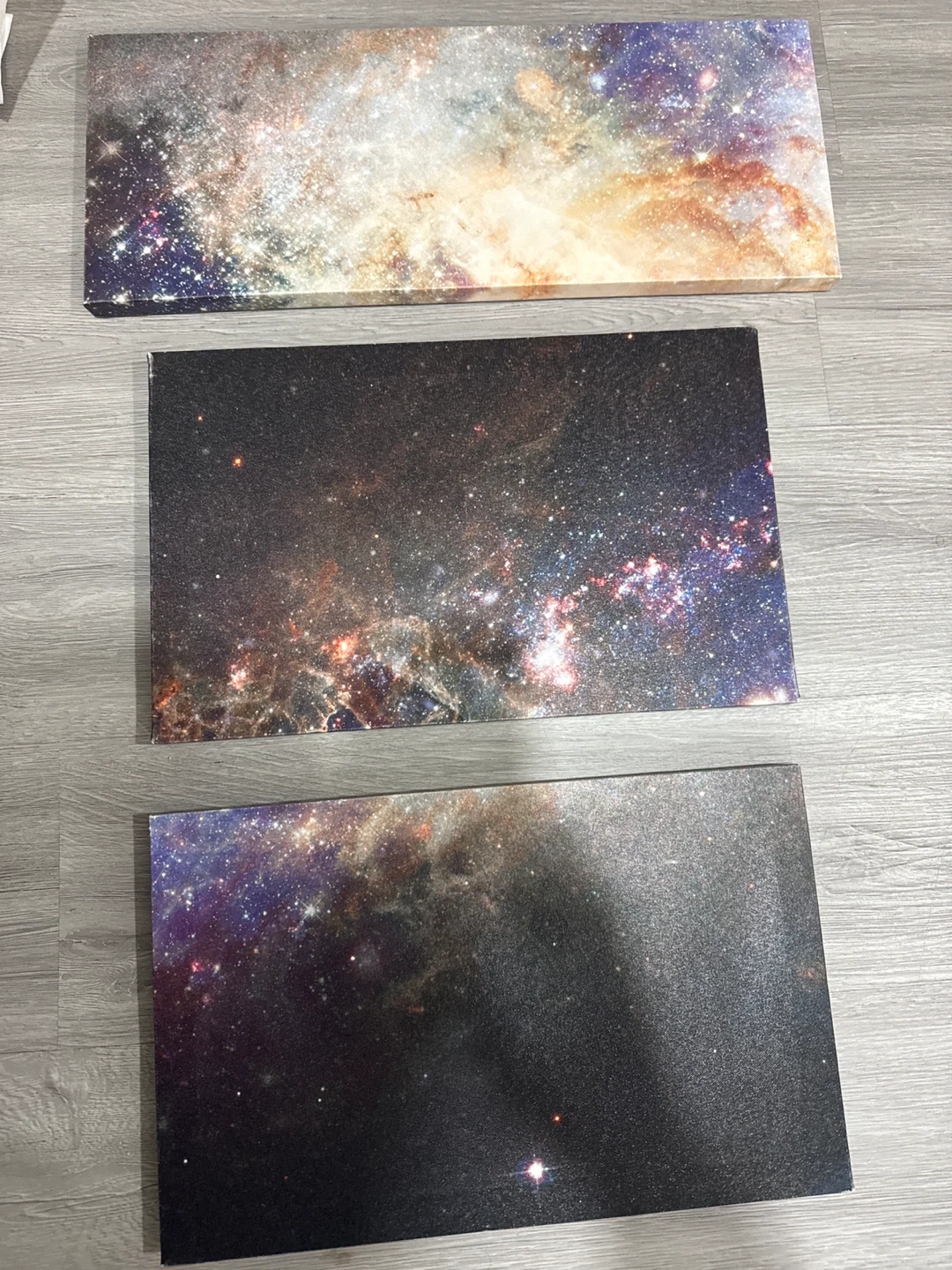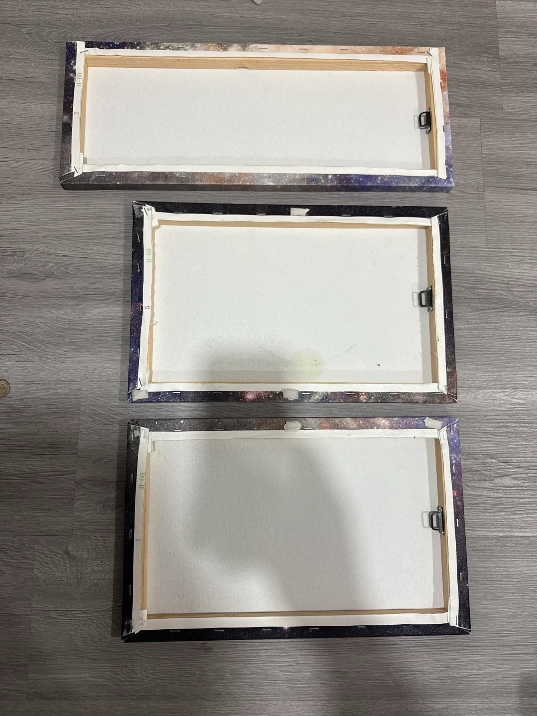 These three canvas prints showcase vibrant galaxy scenes. They're ready to hang with attached hardware. Add some cosmic art to your space!