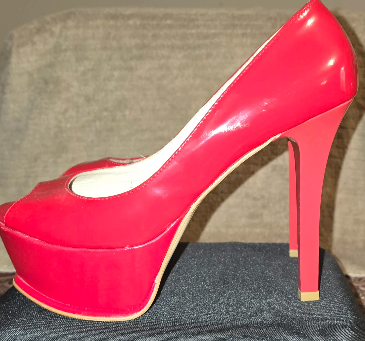 Red Patent Leather Peep-Toe Heels - Size 10